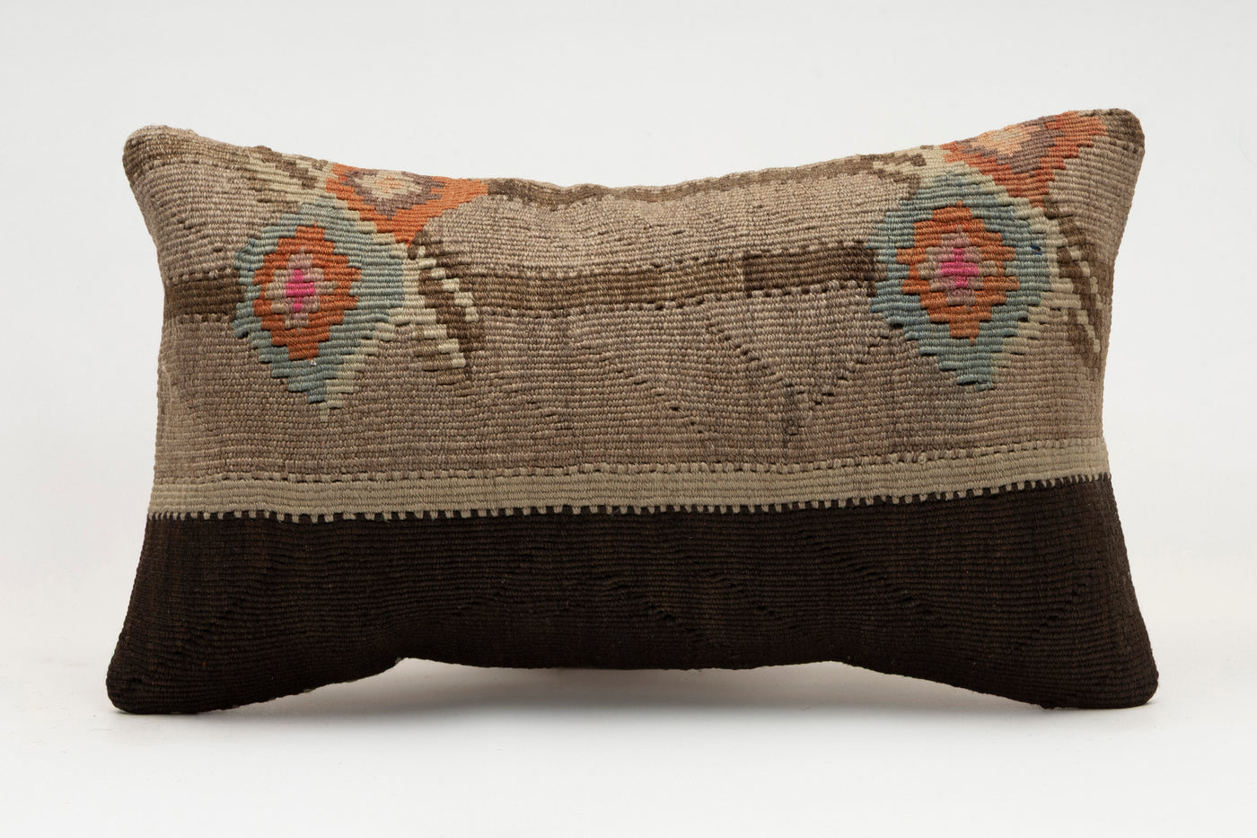 Handmade Turkish Kilim Lumbar Pillow 12x20