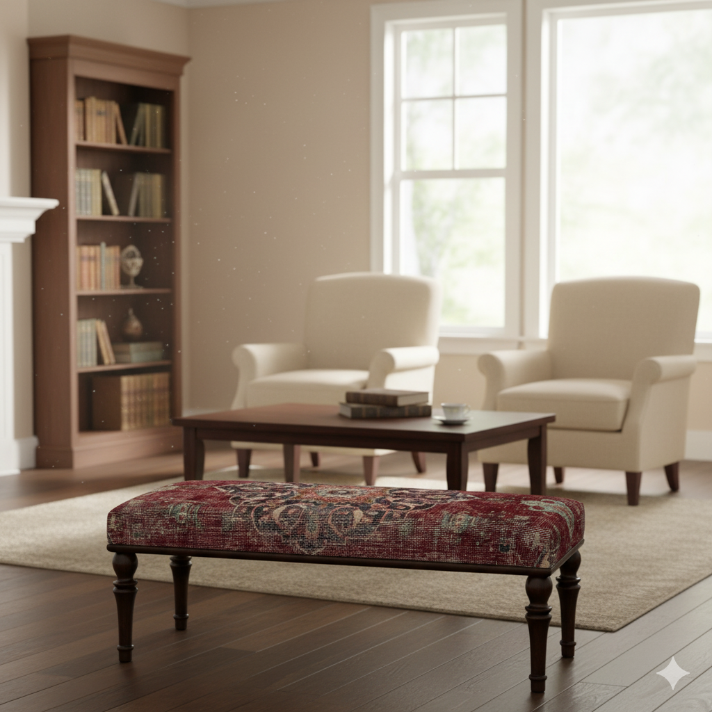 Vintage Rug Upholstered Dining, Bedroom - Entryway Handmade Benches