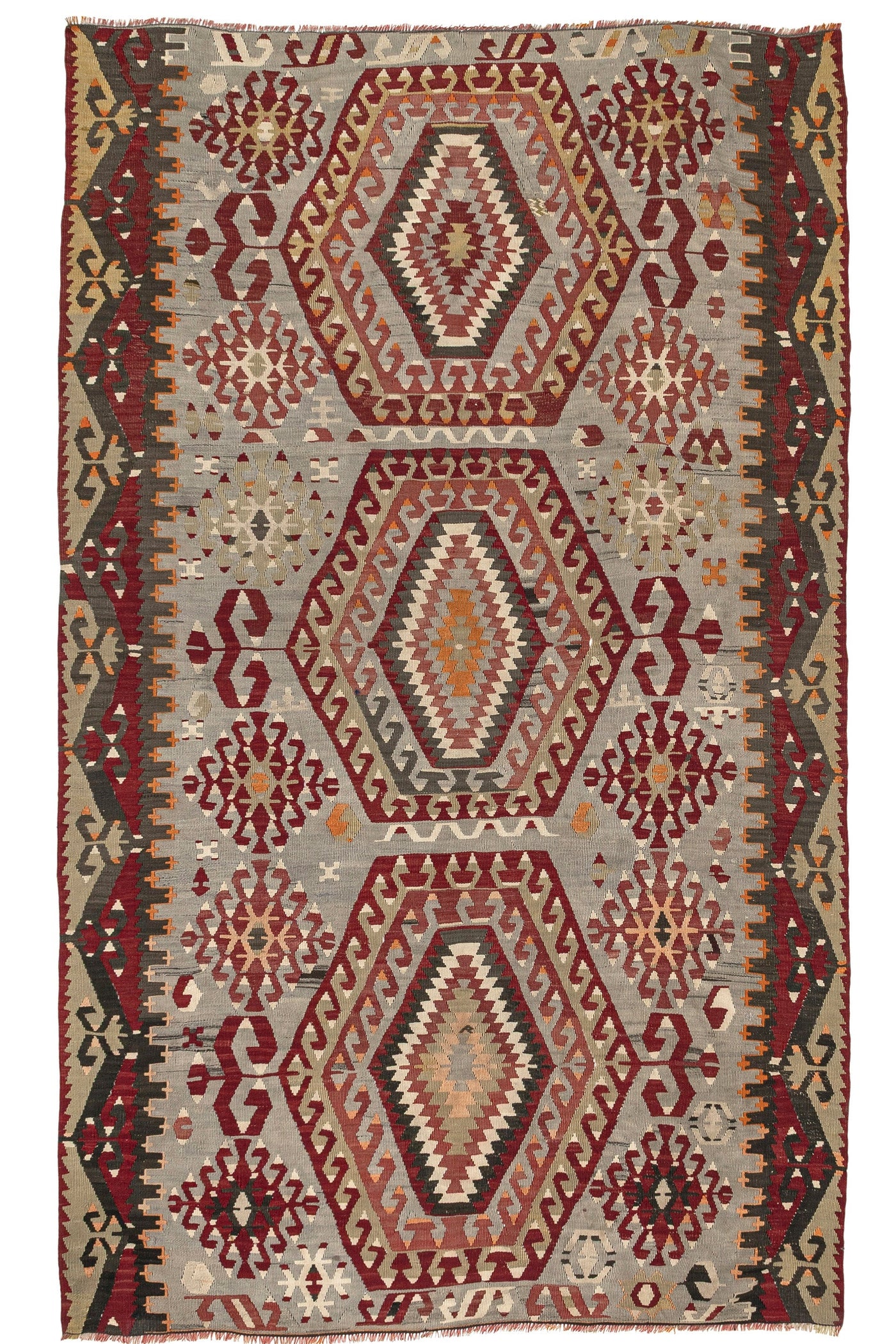 Turkish vintage kilims were made 100% wool on cotton or wool foundation by female artisans in Anatolian villages in the early and mid-20th Century.