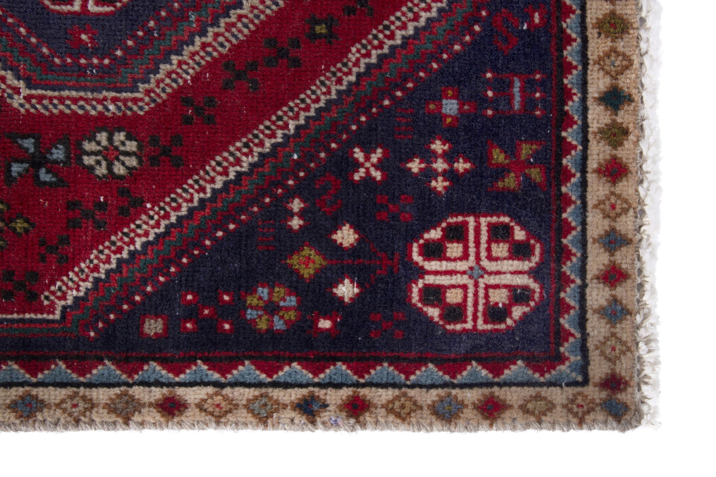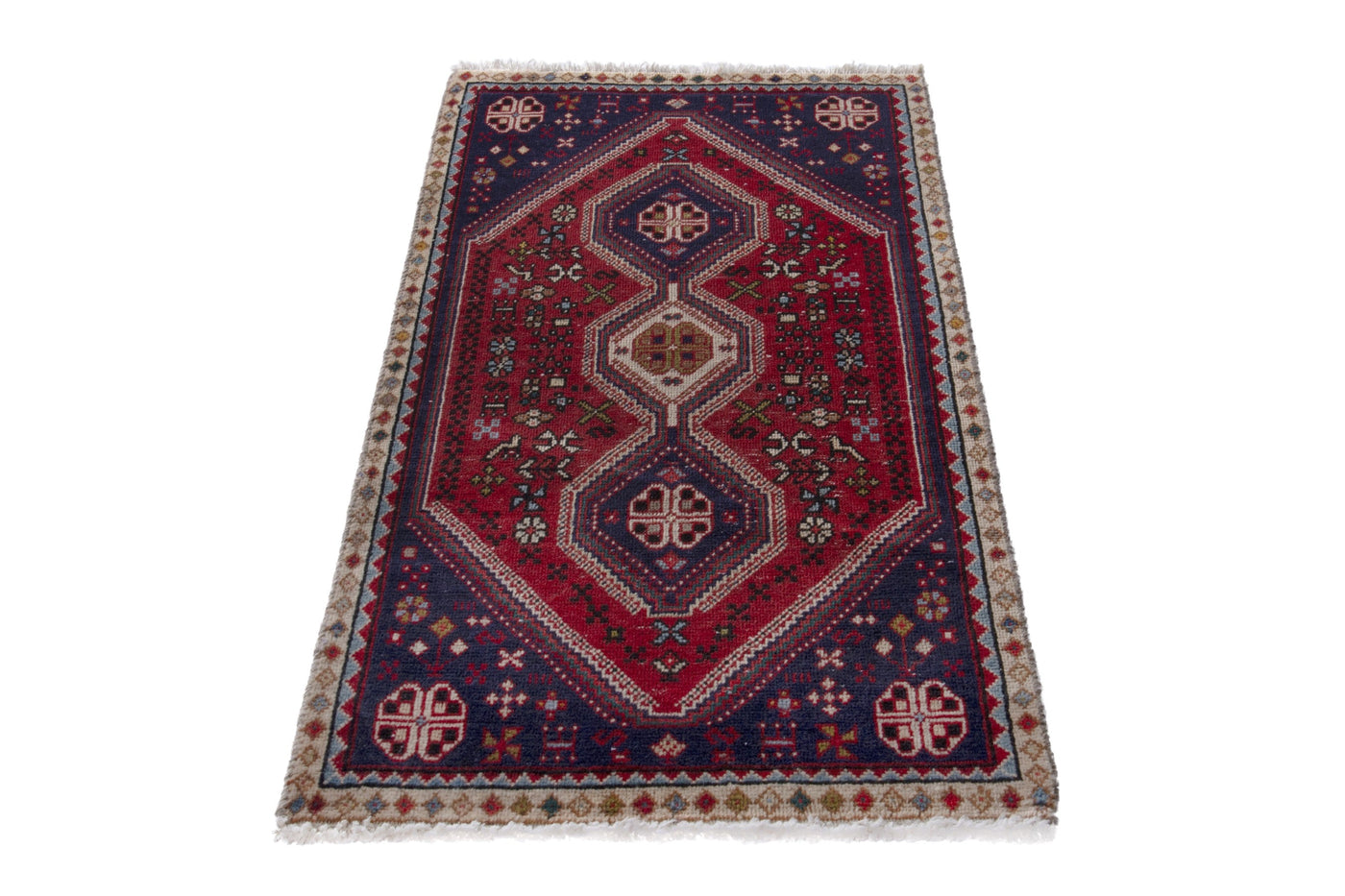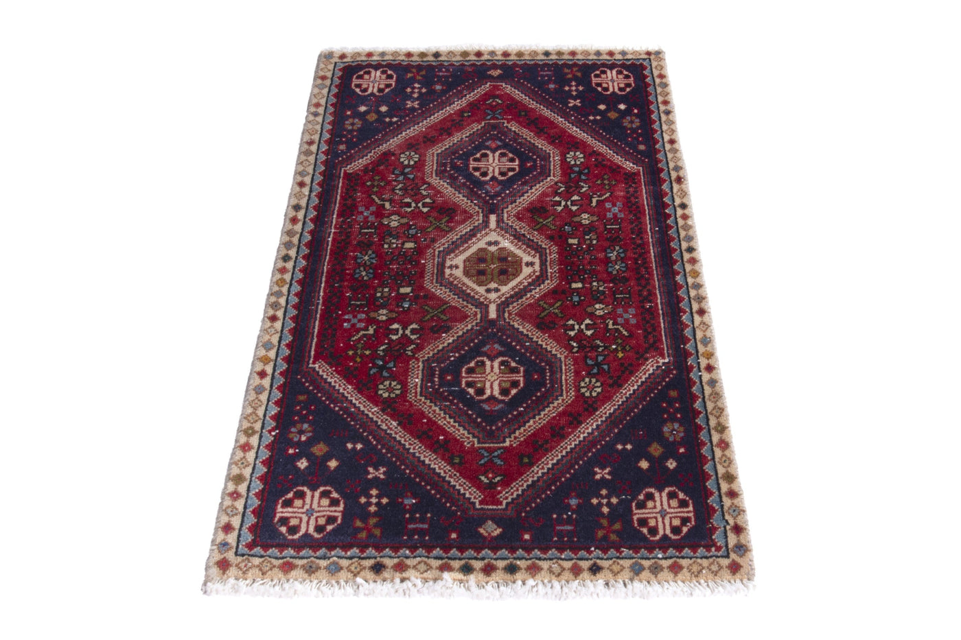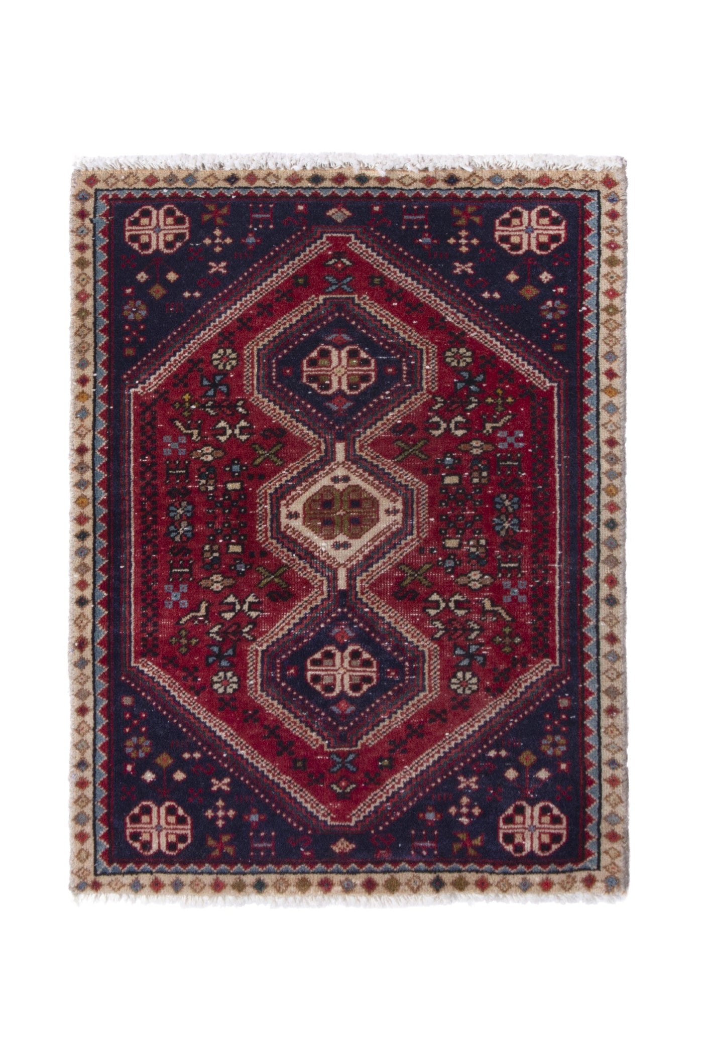 This one-of-a-kind, handmade vintage rug has been carefully restored, cleaned; age-related wear and natural imperfections are present.