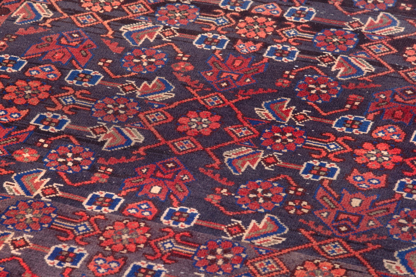 This one-of-a-kind, handmade vintage rug has been carefully restored, cleaned; age-related wear and natural imperfections are present.