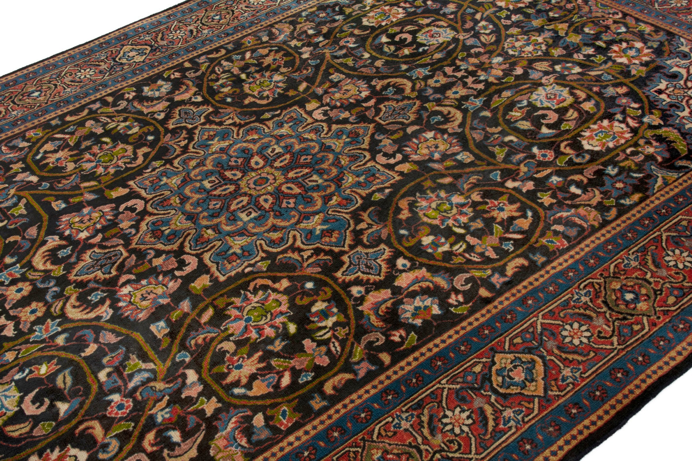 This one-of-a-kind, handmade vintage rug has been carefully restored, cleaned; age-related wear and natural imperfections are present.
