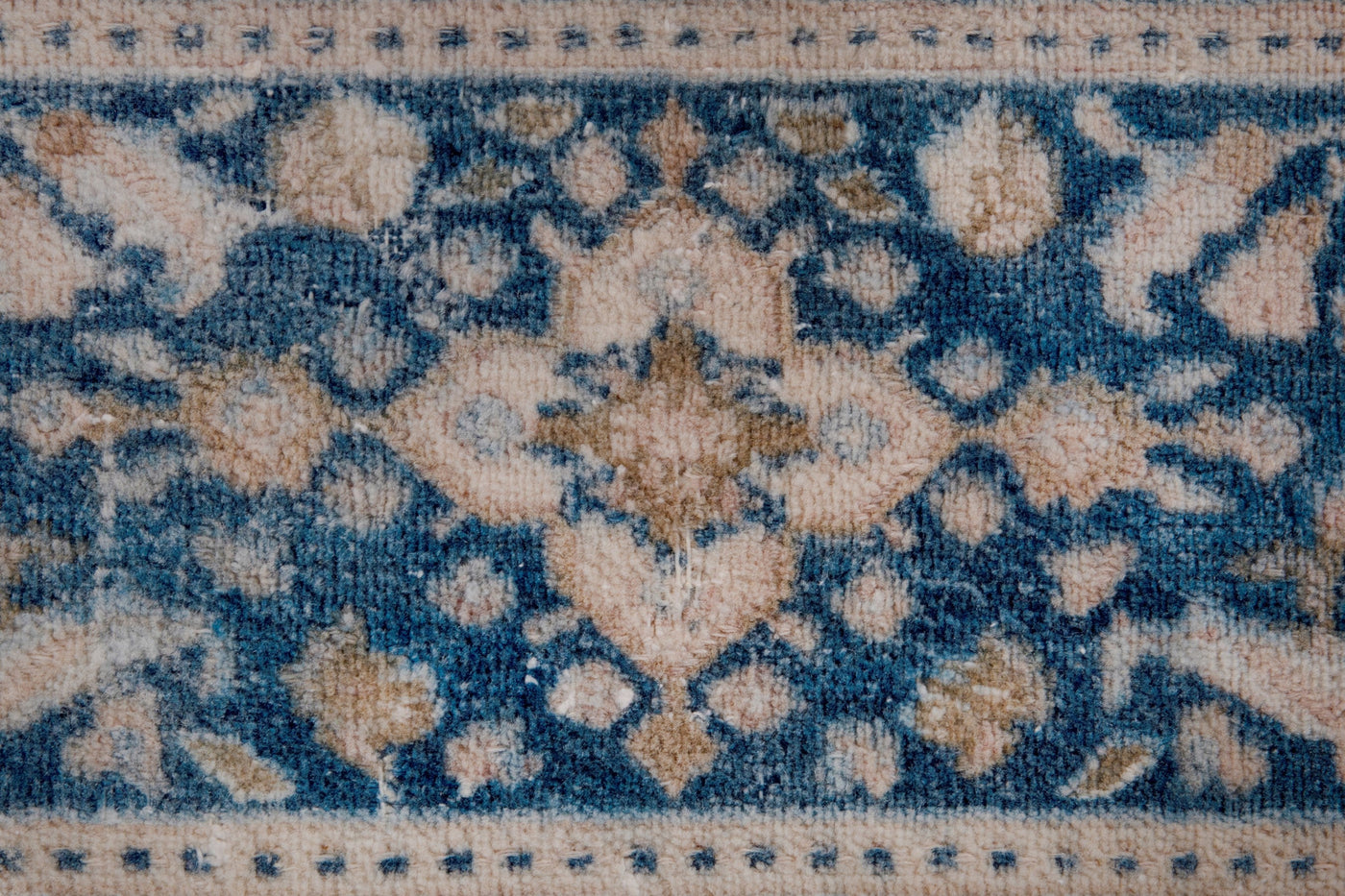 This one-of-a-kind, handmade vintage rug has been carefully restored, cleaned; age-related wear and natural imperfections are present.