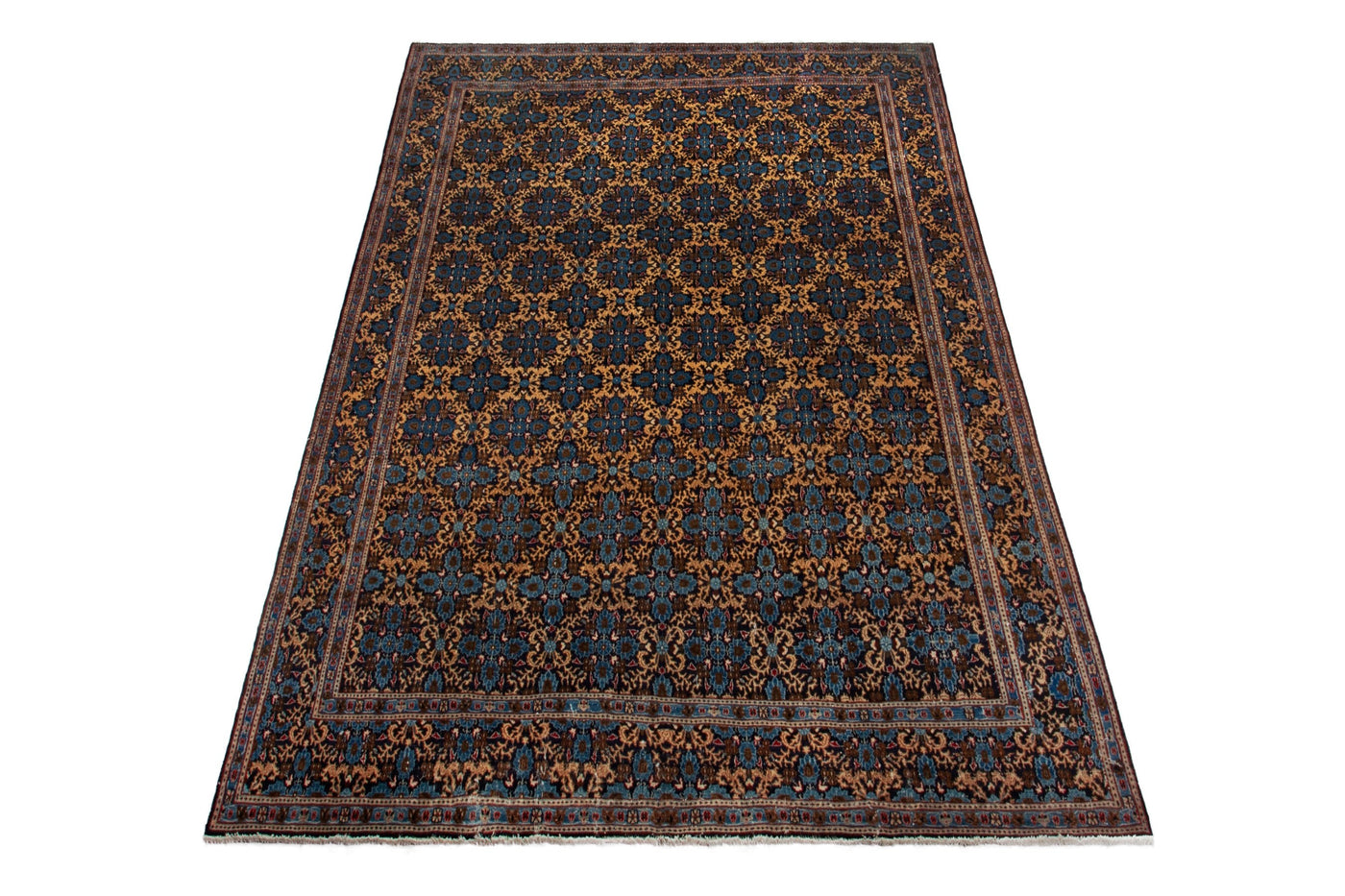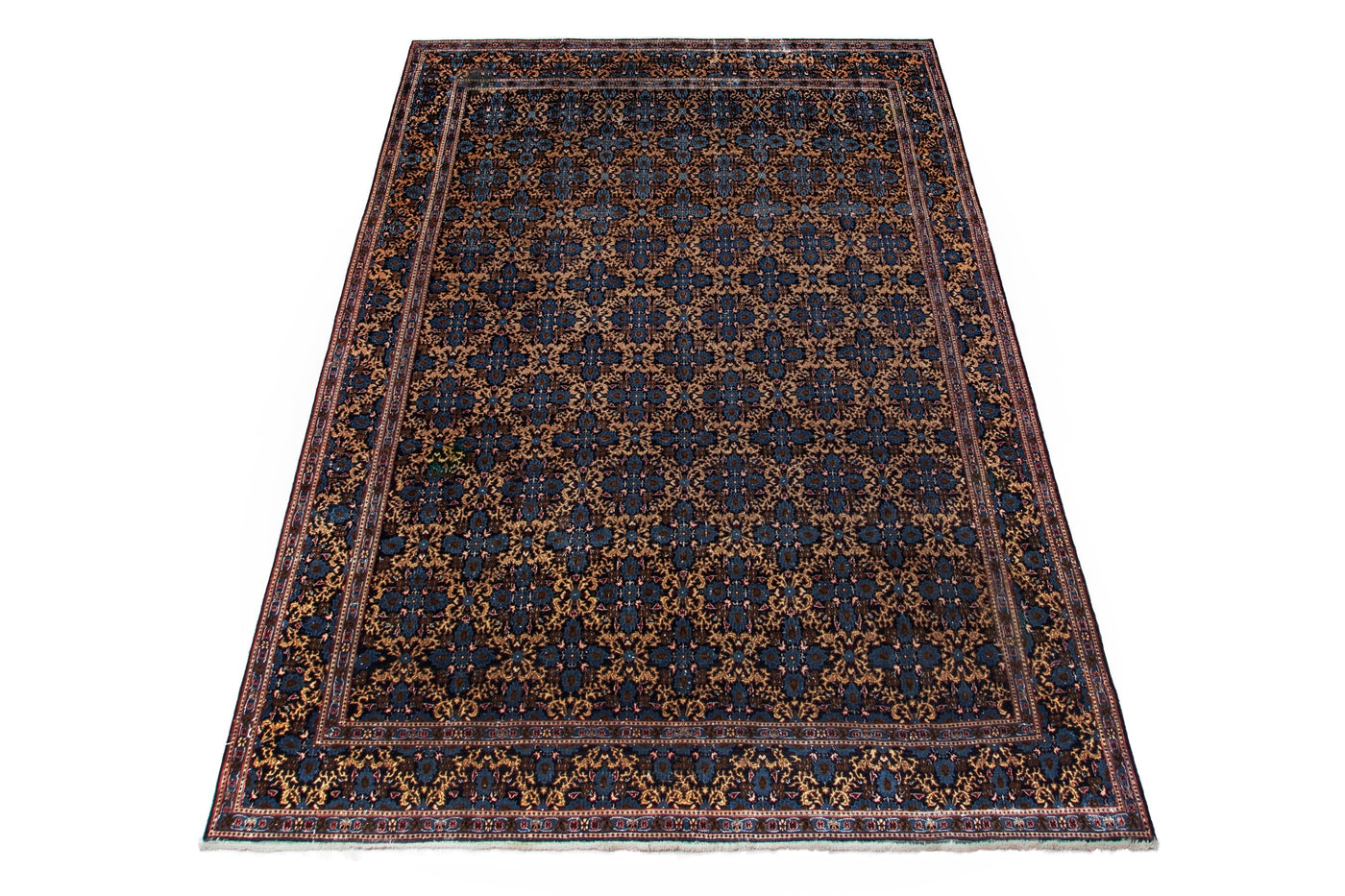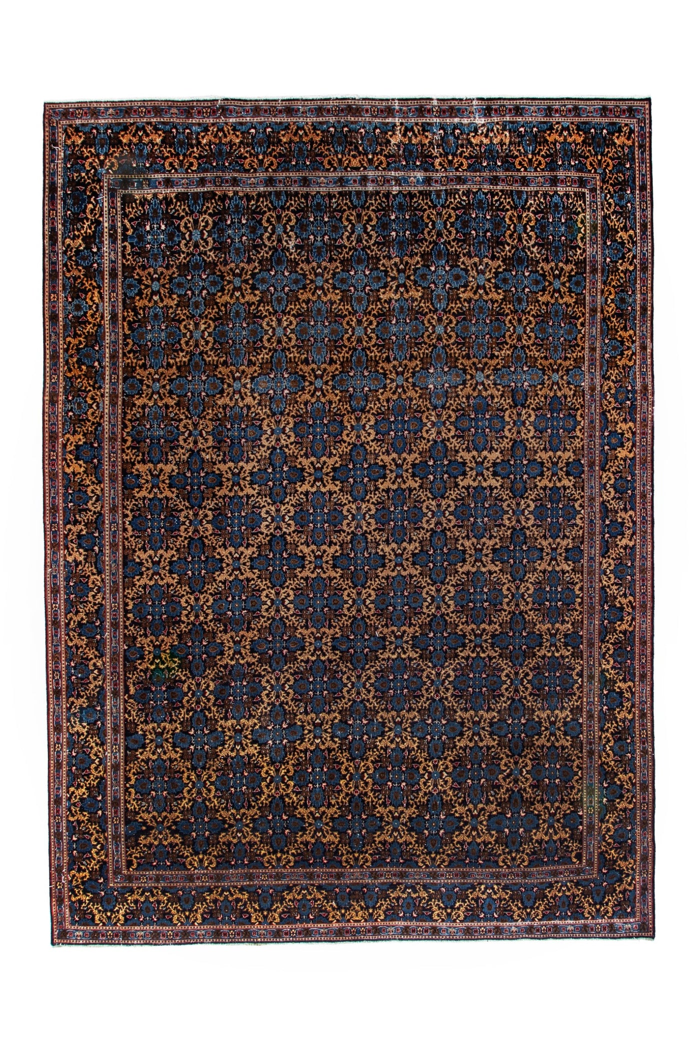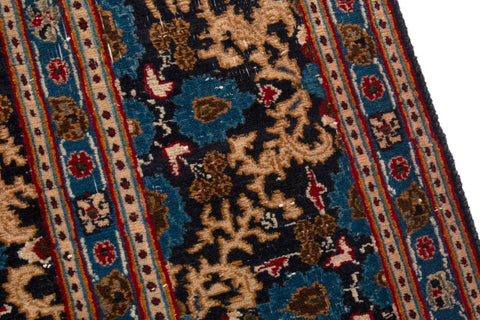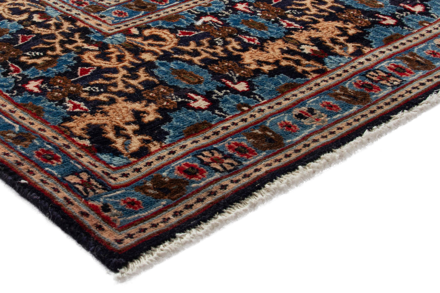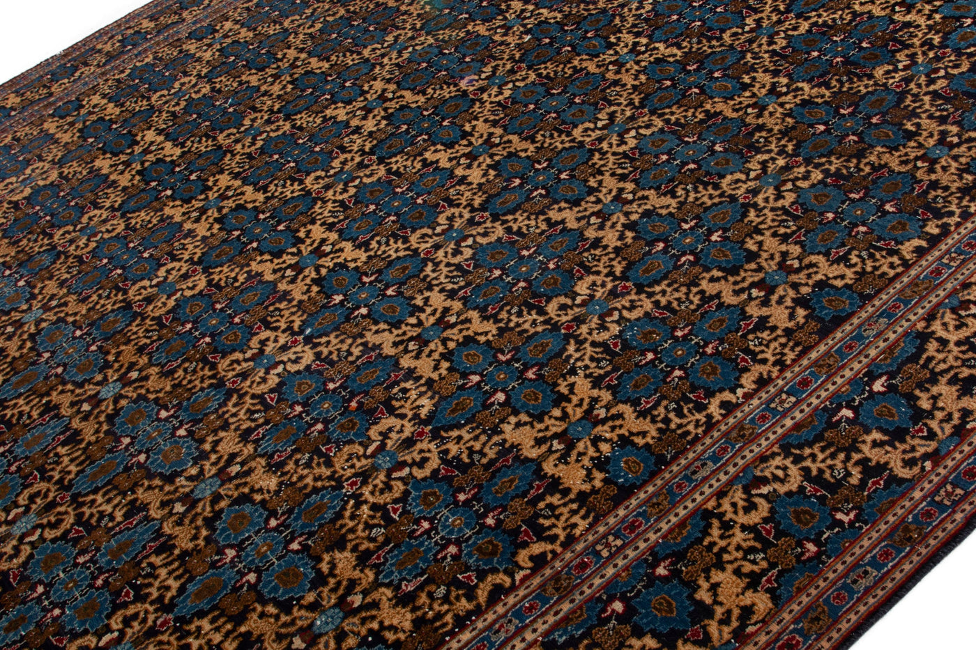 This one-of-a-kind, handmade vintage rug has been carefully restored, cleaned; age-related wear and natural imperfections are present.