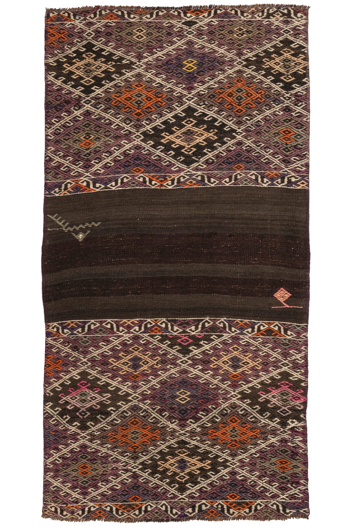 • Turkish vintage kilims were made 100% wool on cotton or wool foundation by female artisans in Anatolian villages in the early and mid-20th Century.