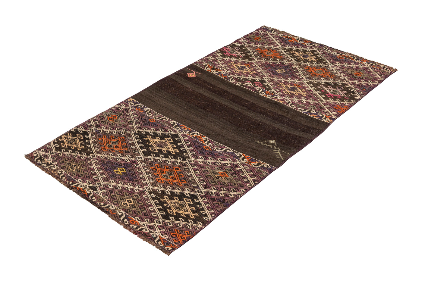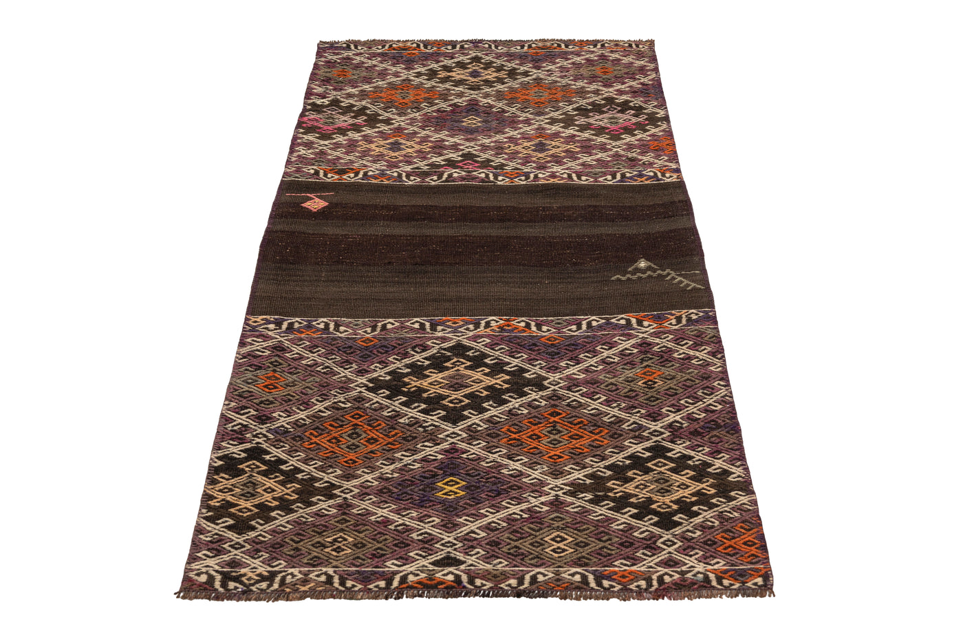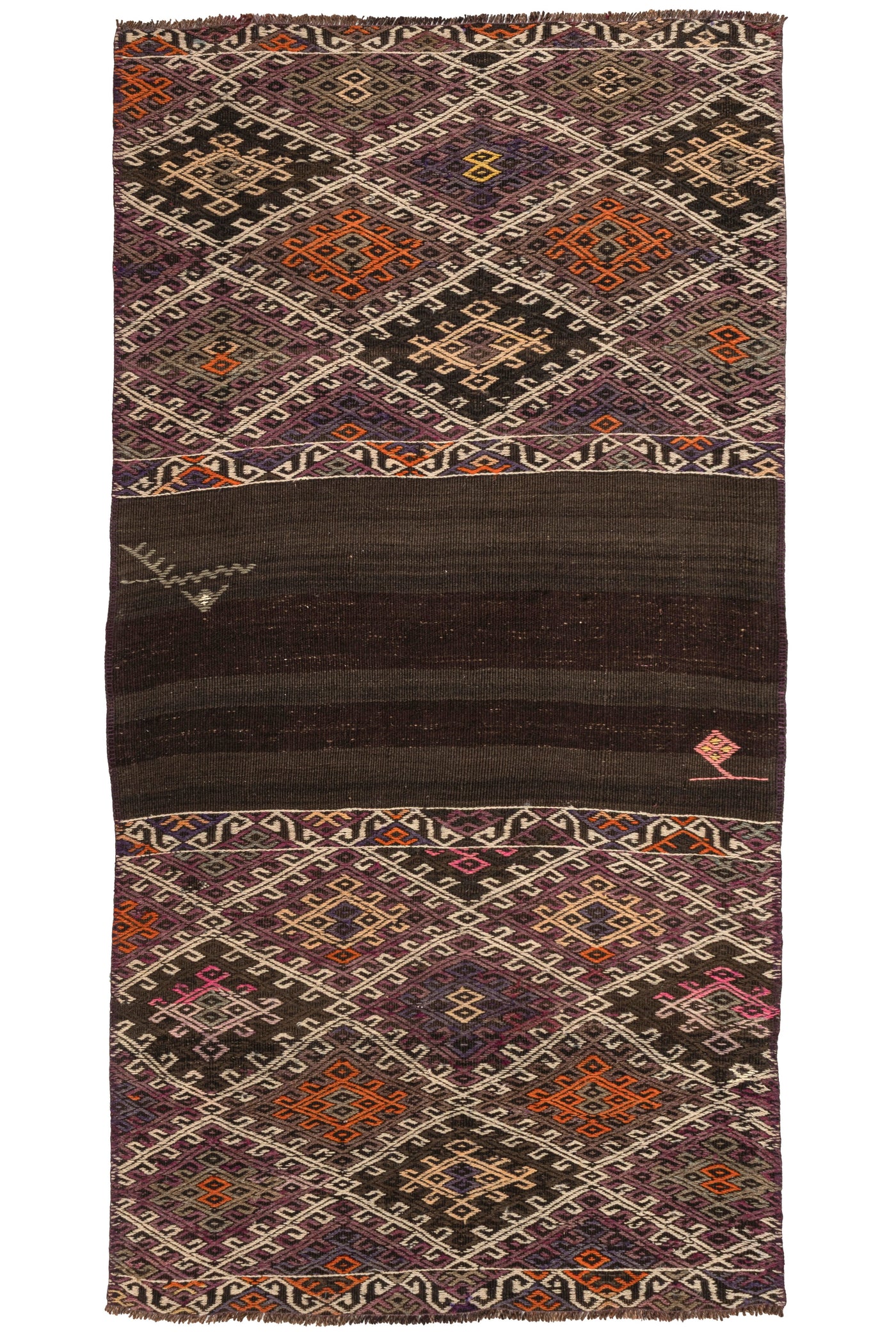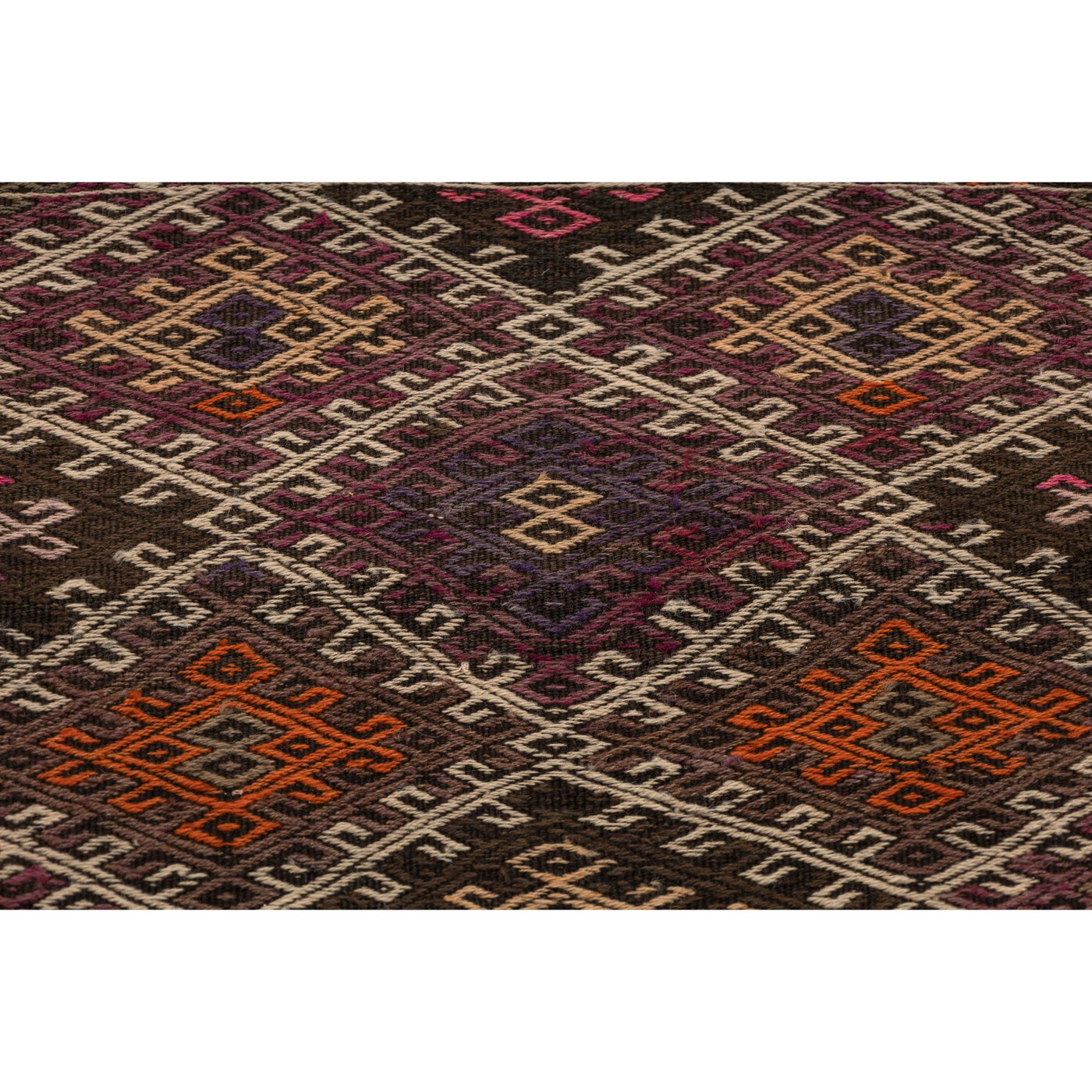 This one-of-a-kind vintage Turkish Kilim was made by hand in Bayburt - Anatolian villages in the mid-20th century.