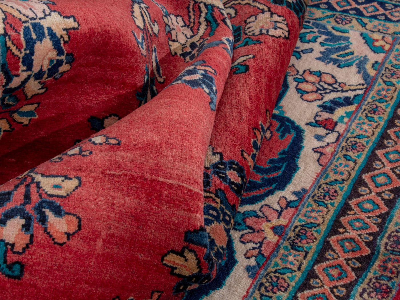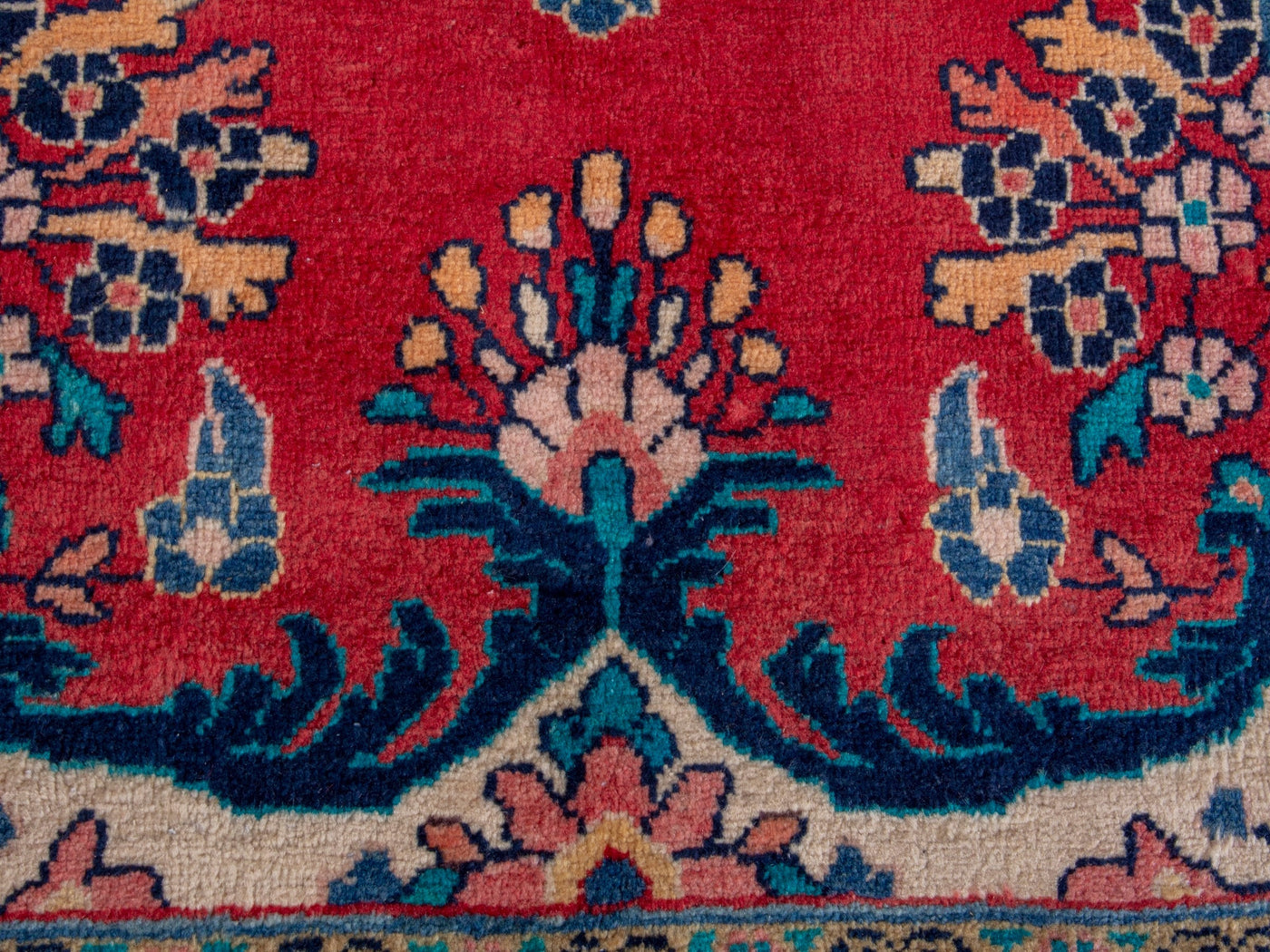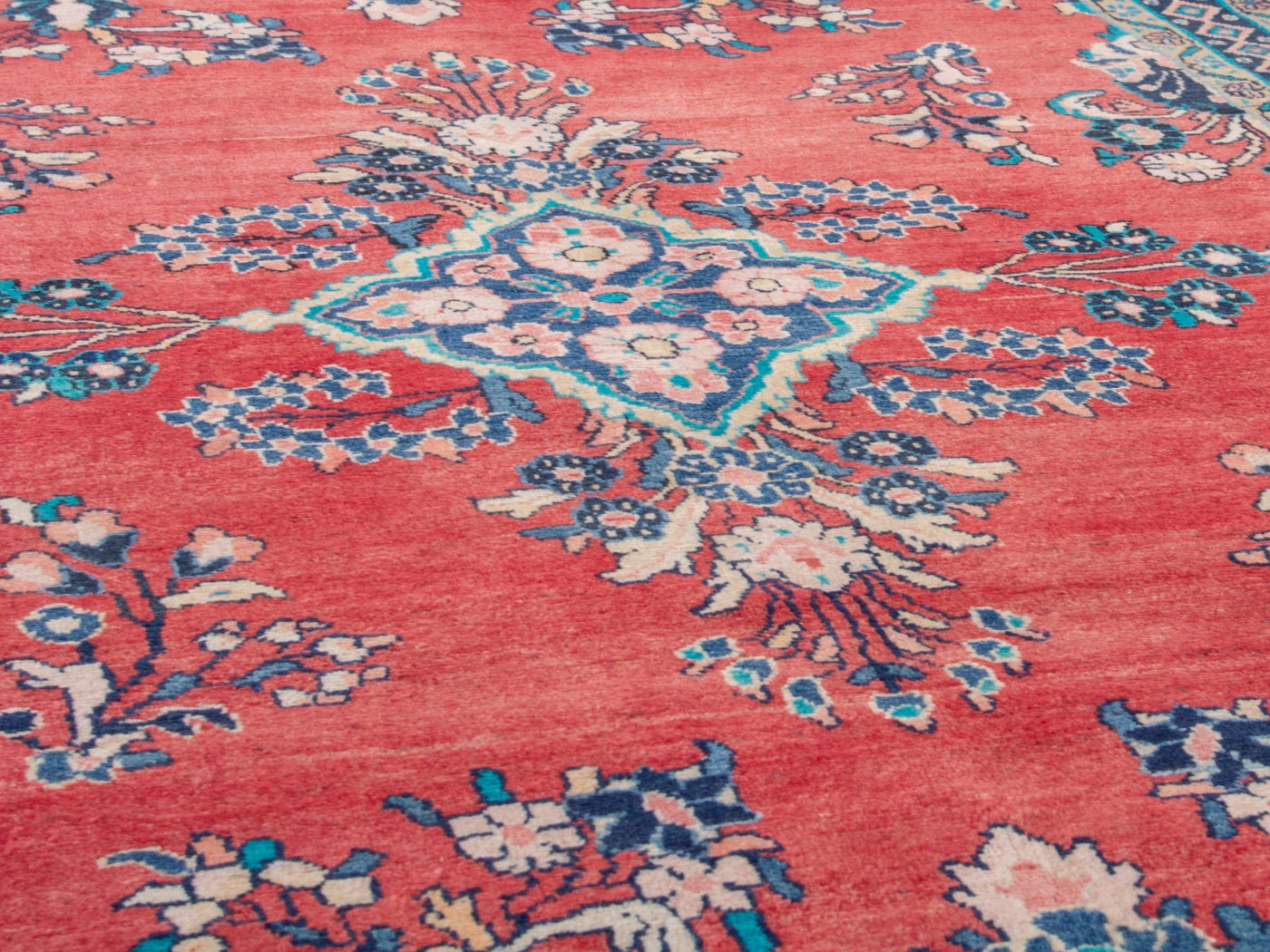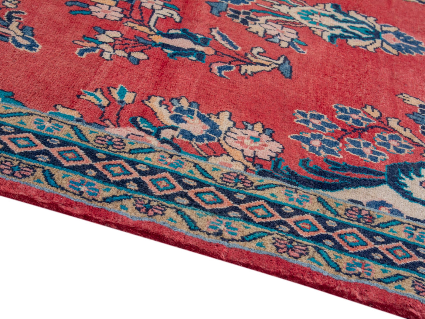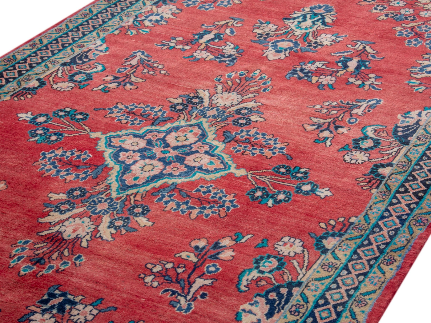 This one-of-a-kind, handmade vintage rug has been carefully restored, cleaned; age-related wear and natural imperfections are present.