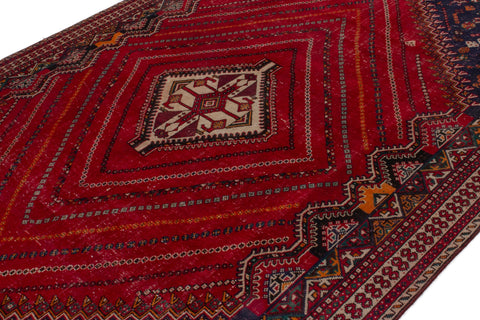 6'10" x 9'5" Handmade Vintage Turkish Red Large Rug