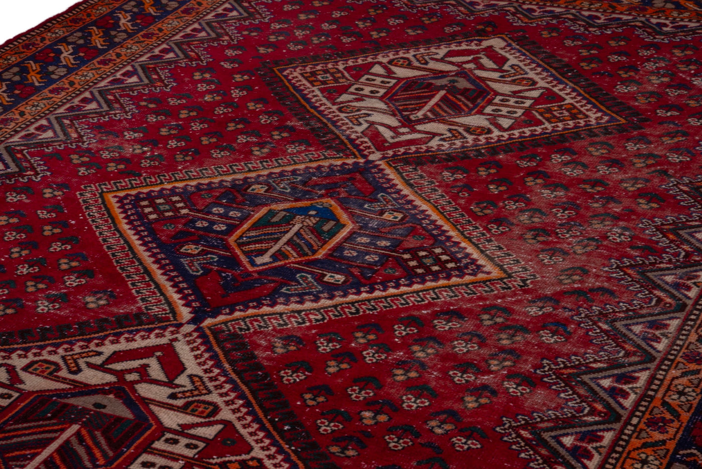This one-of-a-kind, handmade vintage rug has been carefully restored, cleaned; age-related wear and natural imperfections are present.