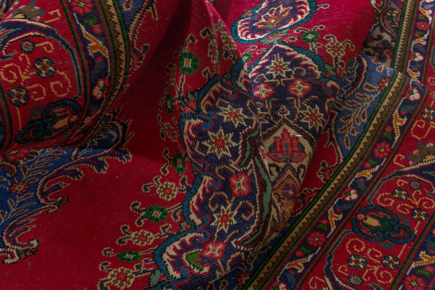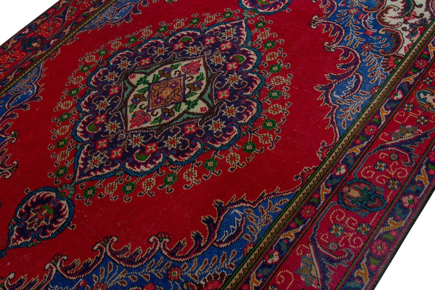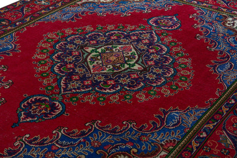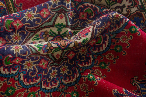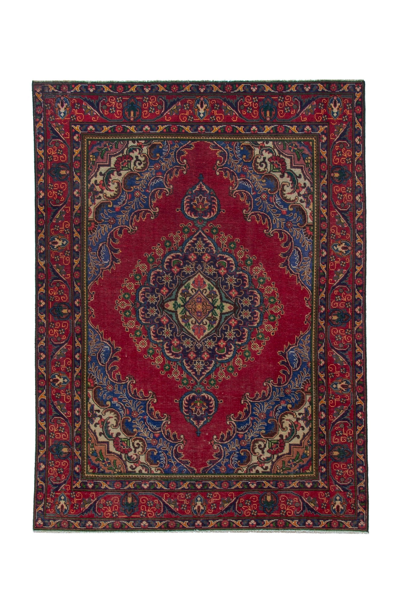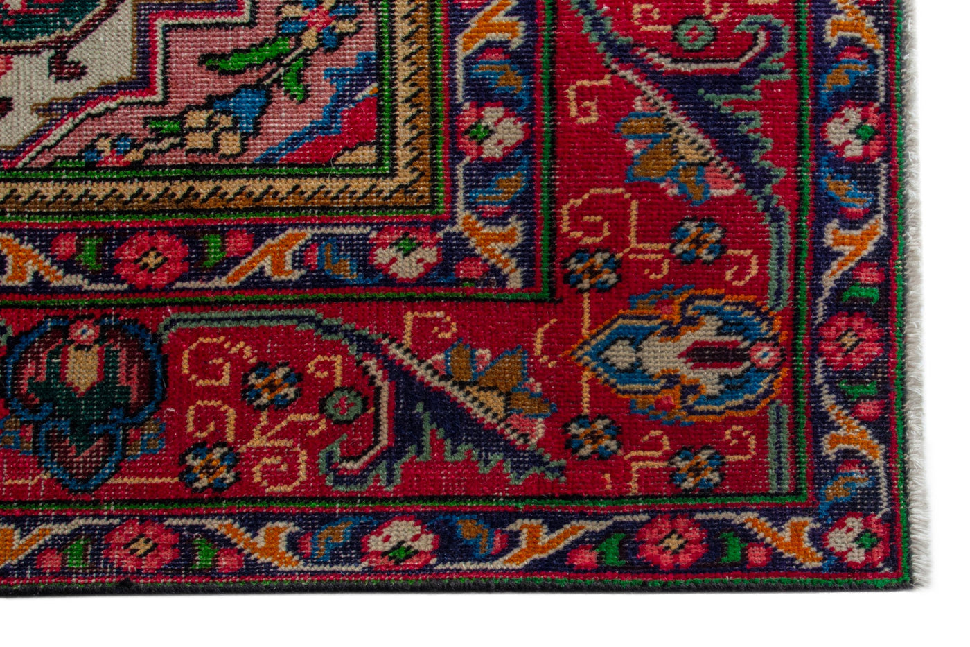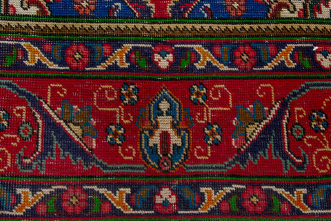 This one-of-a-kind, handmade vintage rug has been carefully restored, cleaned; age-related wear and natural imperfections are present.