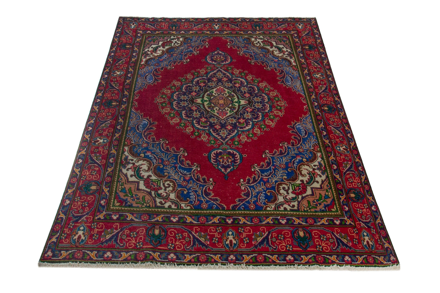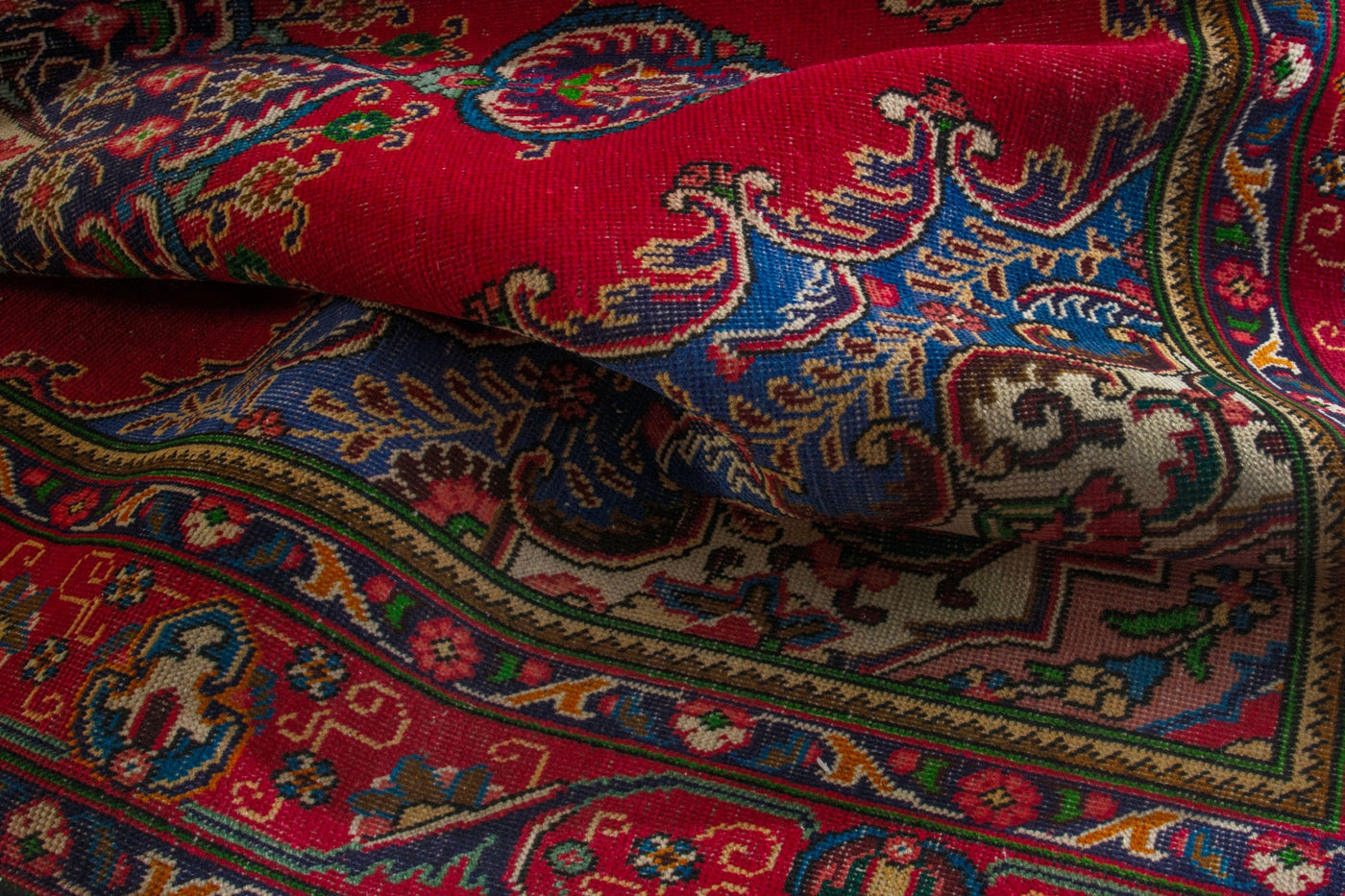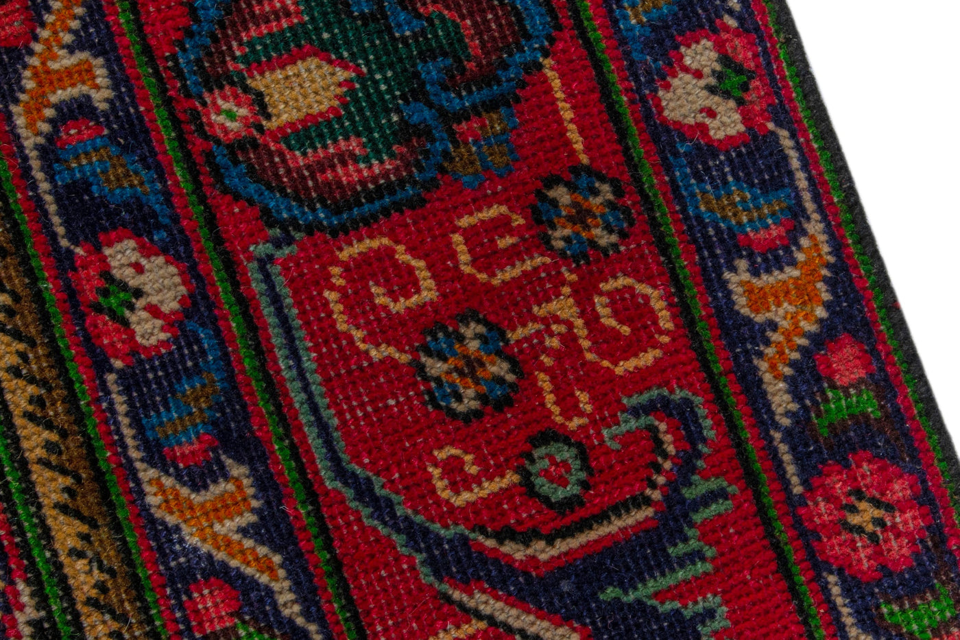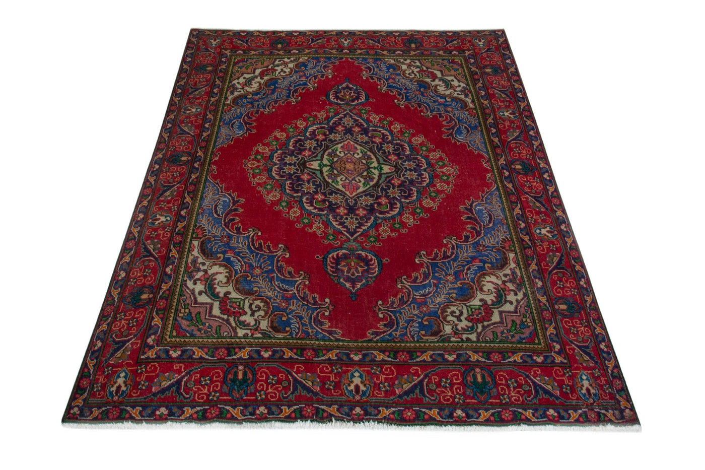 This one-of-a-kind, handmade vintage rug has been carefully restored, cleaned; age-related wear and natural imperfections are present.