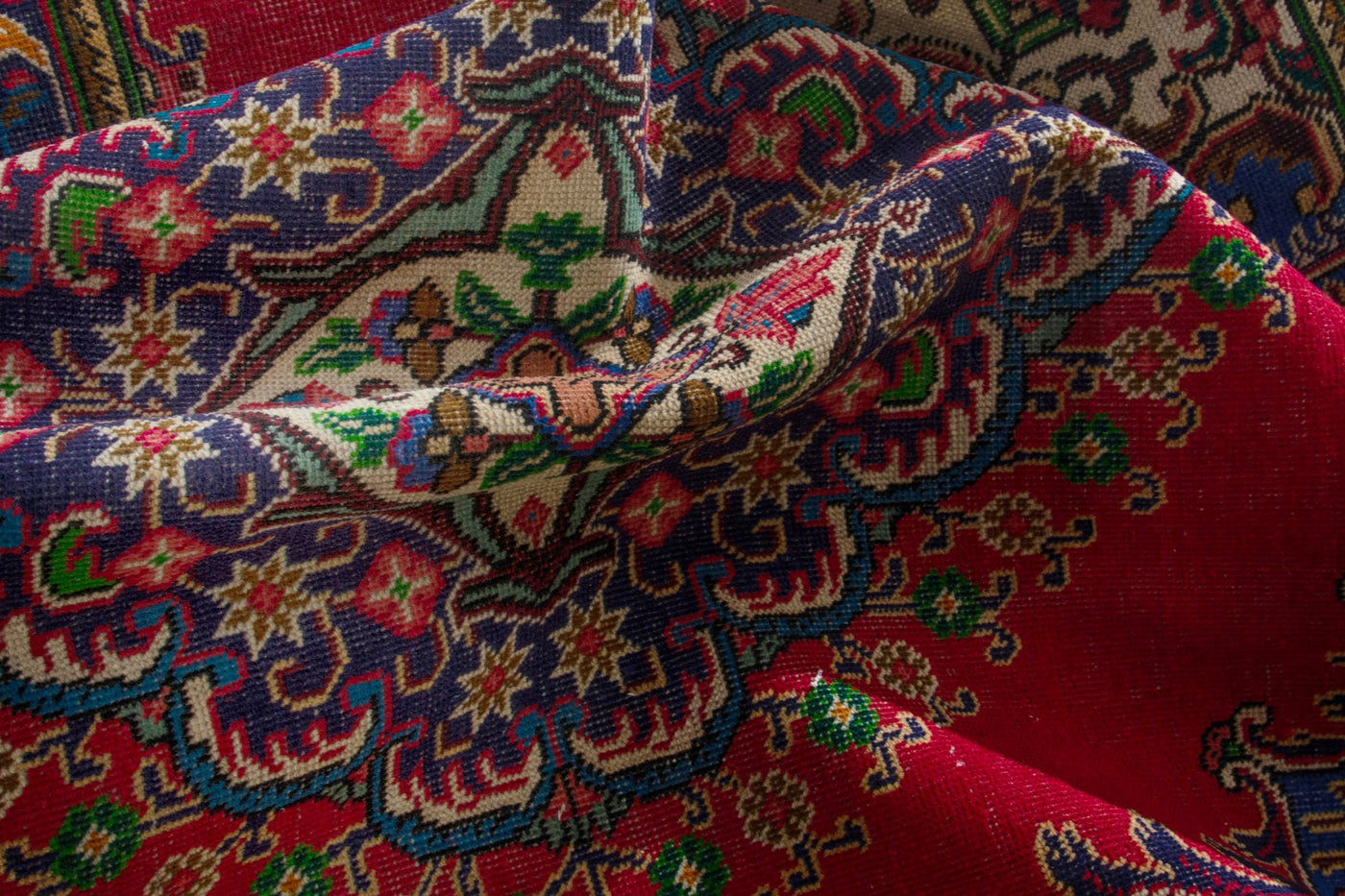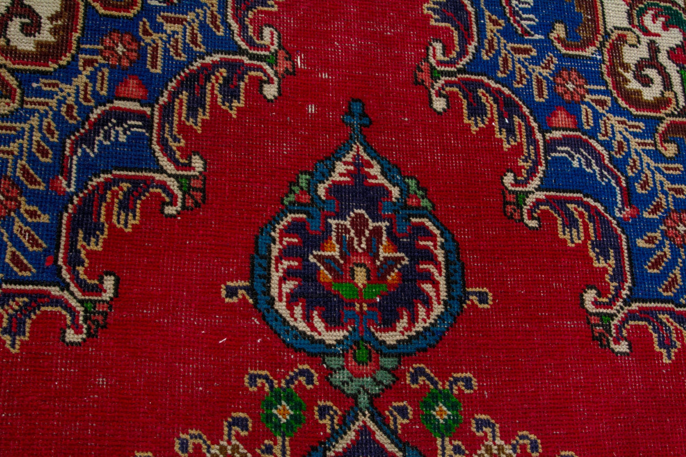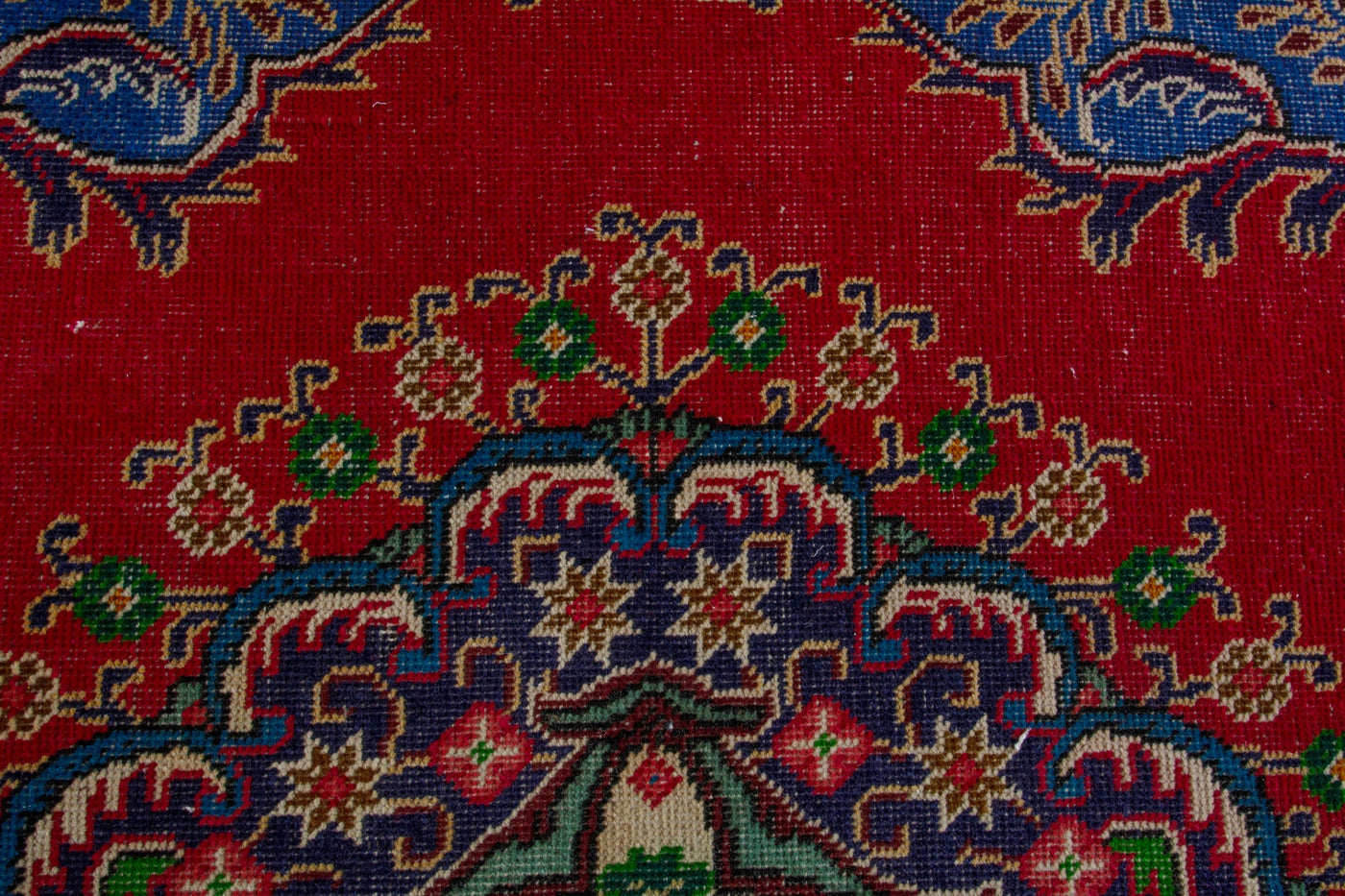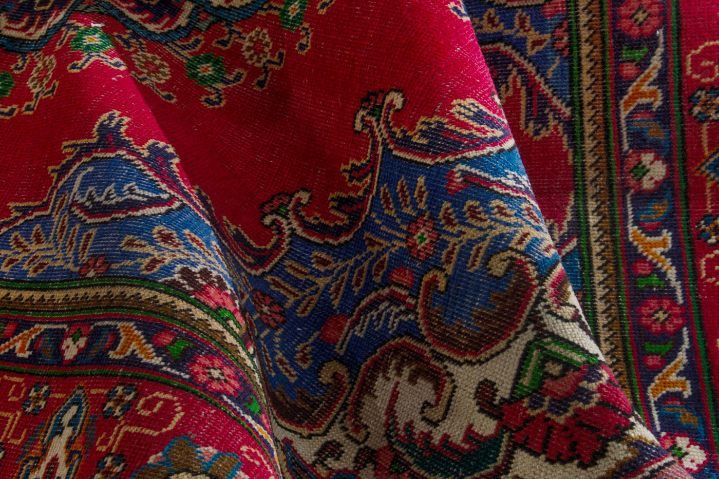 This one-of-a-kind, handmade vintage rug has been carefully restored, cleaned; age-related wear and natural imperfections are present.