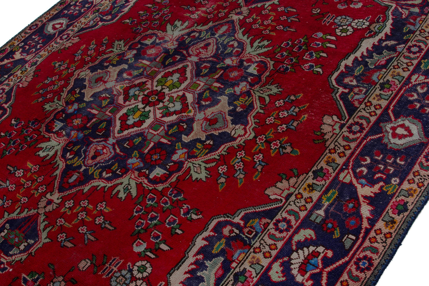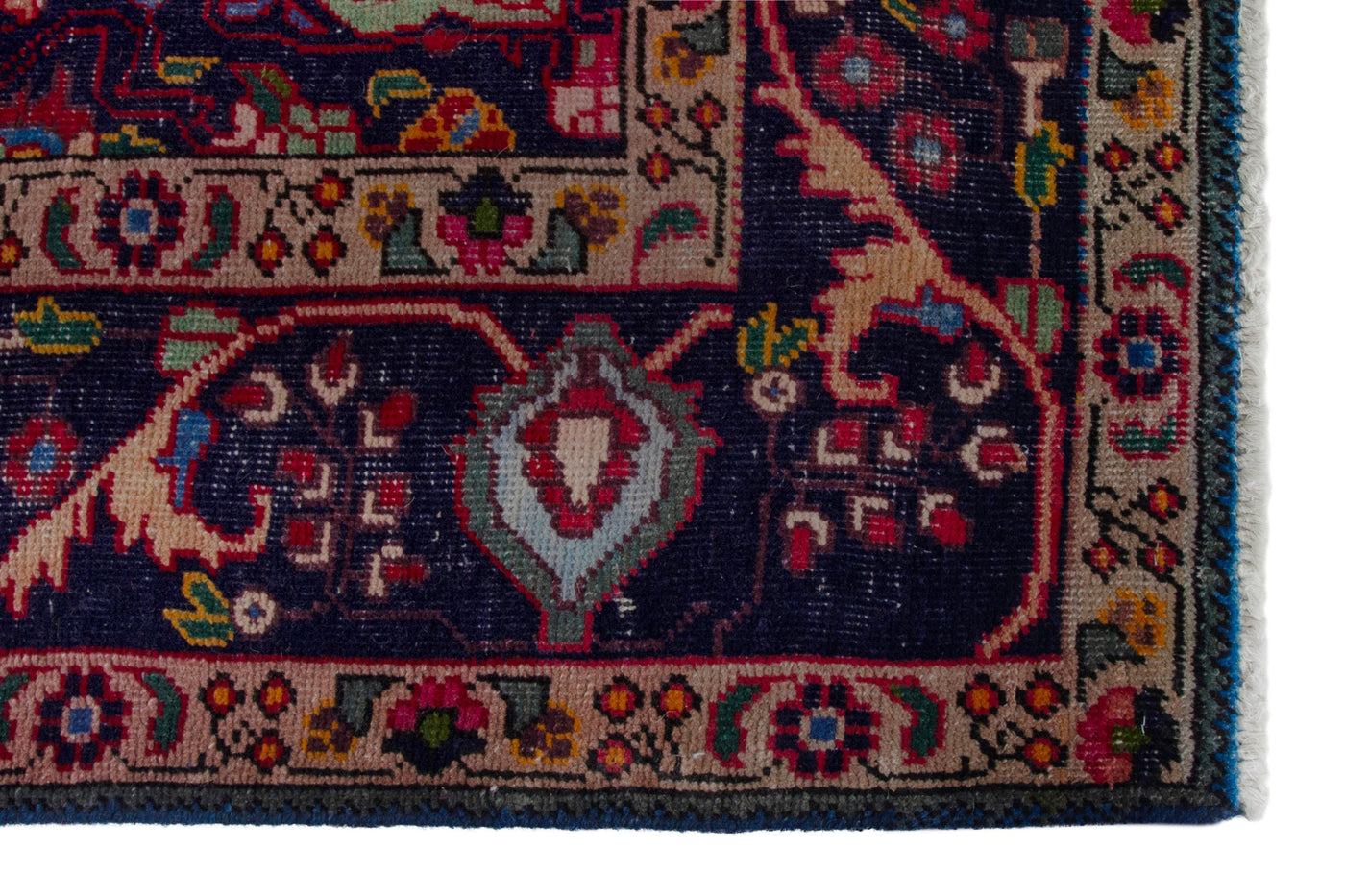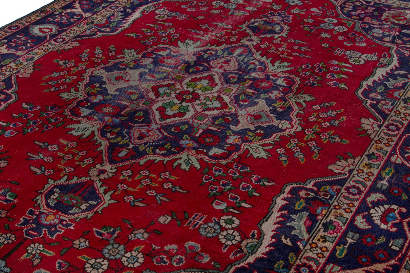 This one-of-a-kind, handmade vintage rug has been carefully restored, cleaned; age-related wear and natural imperfections are present.
