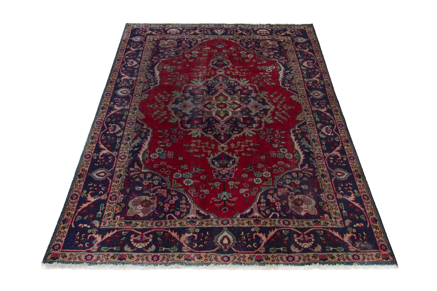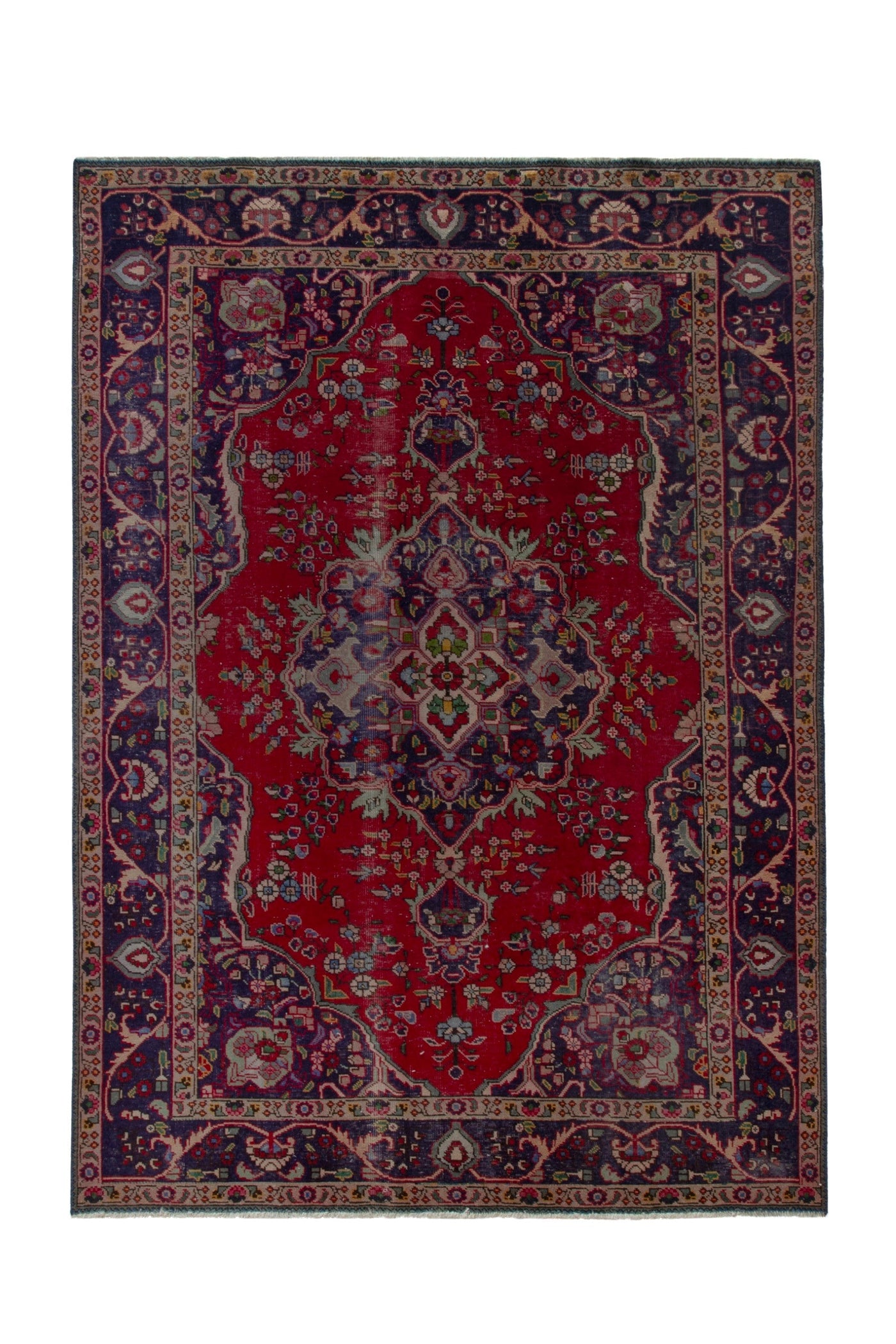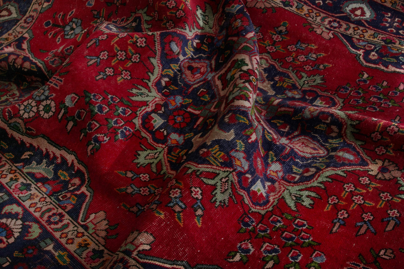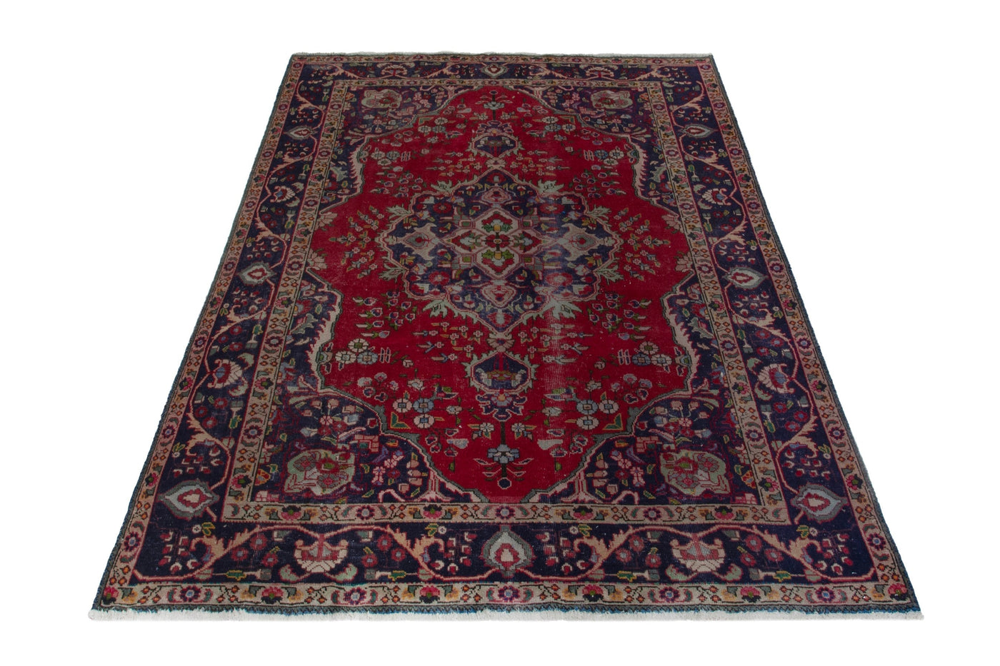 This one-of-a-kind, handmade vintage rug has been carefully restored, cleaned; age-related wear and natural imperfections are present.