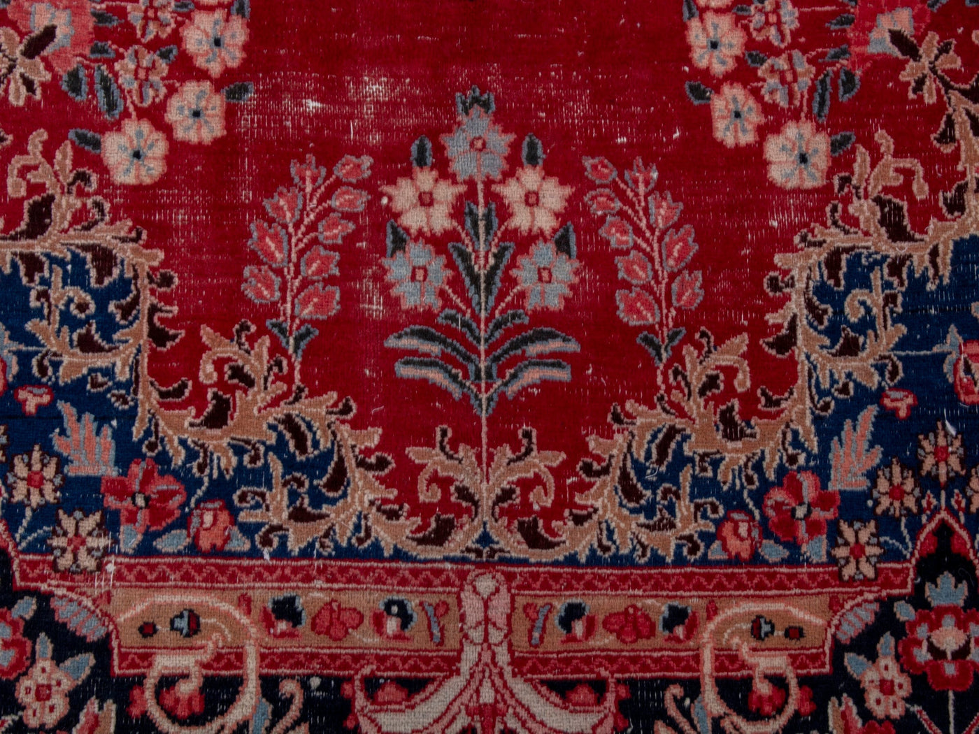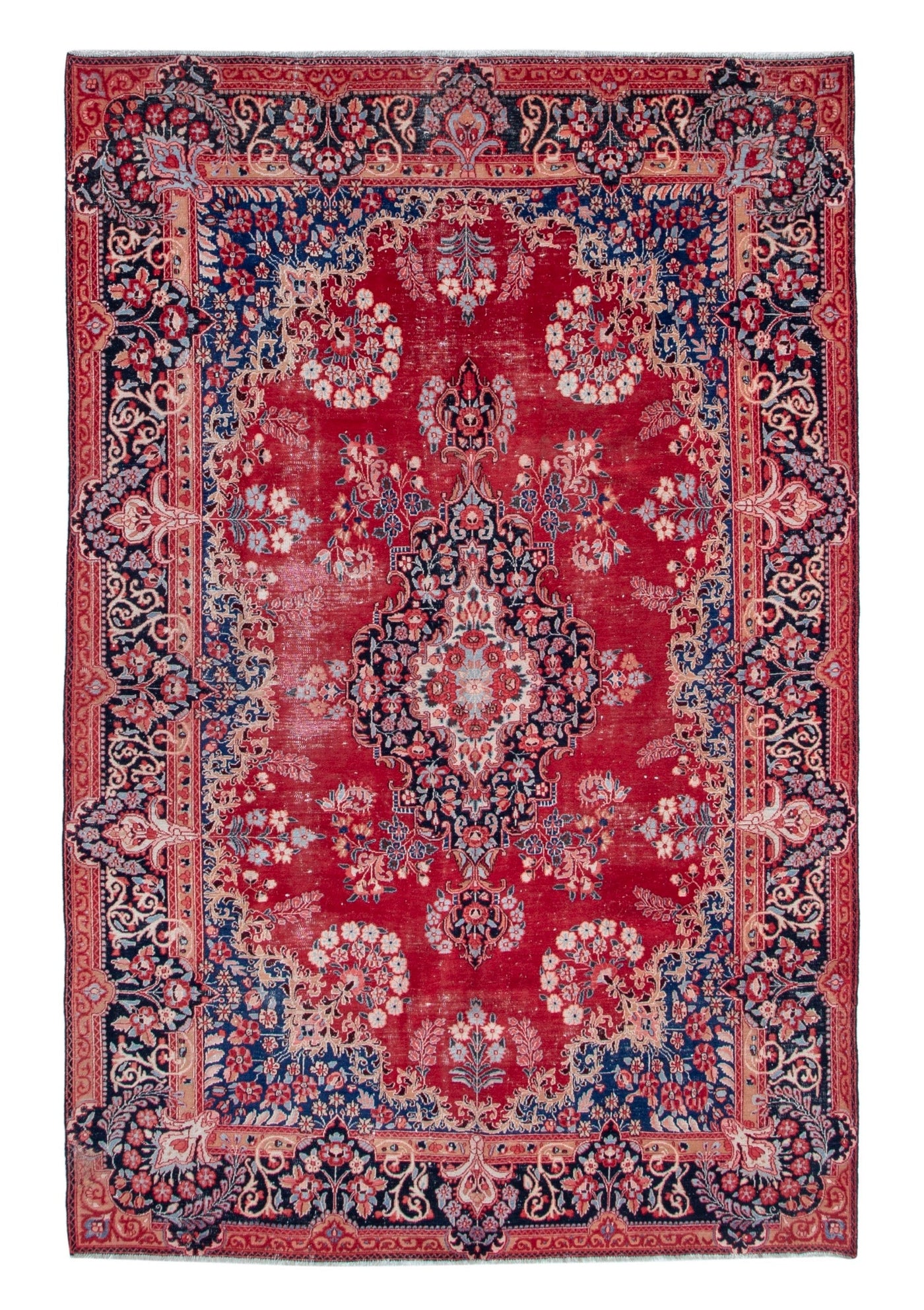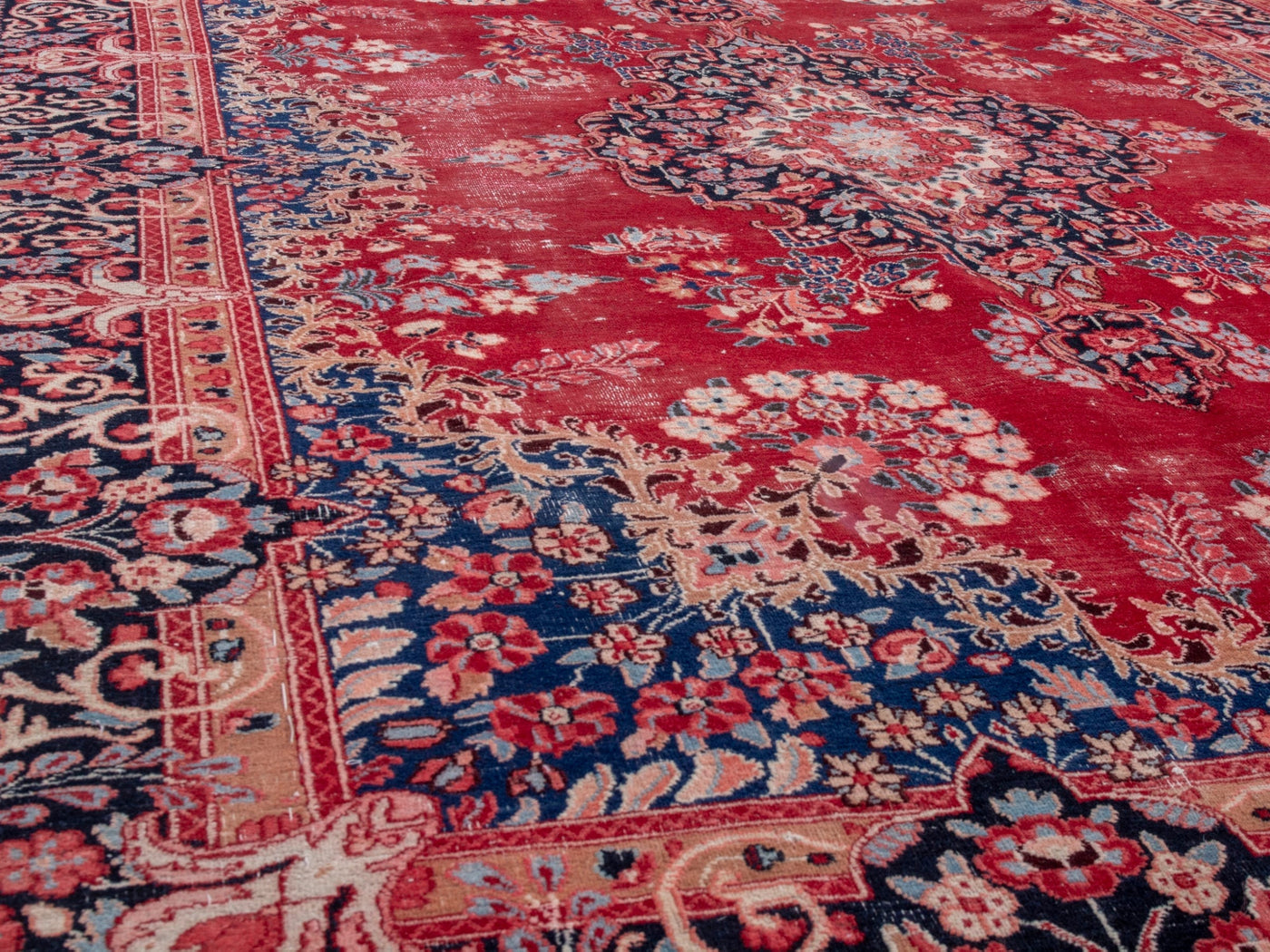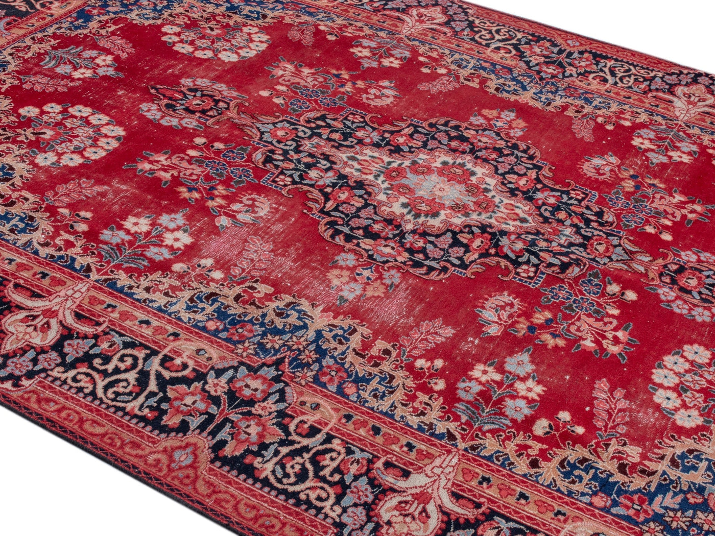 This one-of-a-kind, handmade vintage rug has been carefully restored, cleaned; age-related wear and natural imperfections are present.