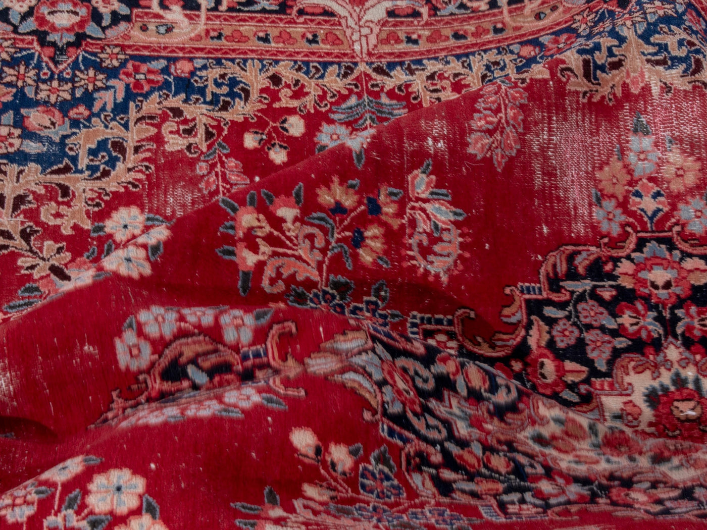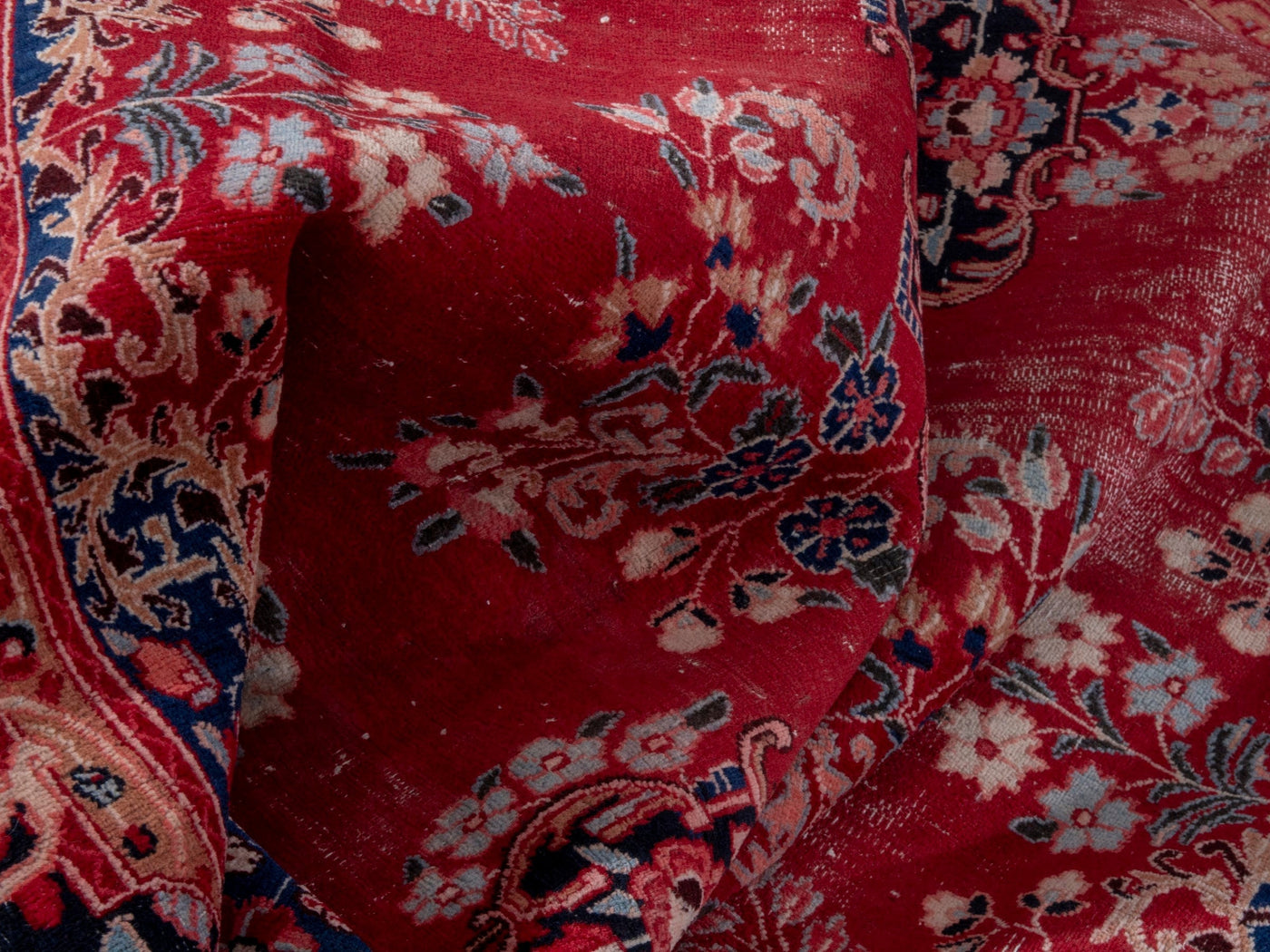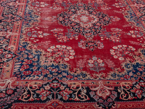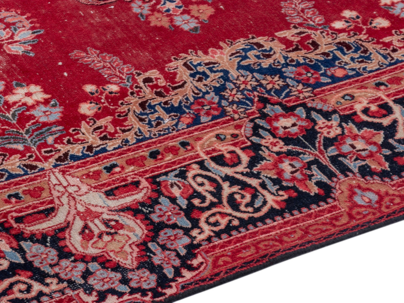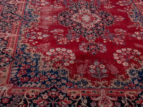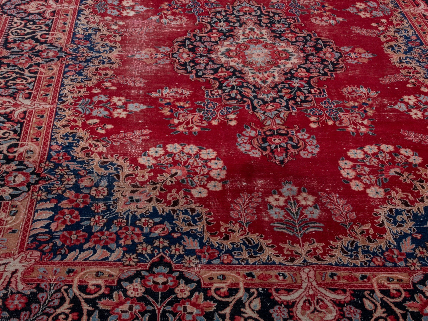 This one-of-a-kind, handmade vintage rug has been carefully restored, cleaned; age-related wear and natural imperfections are present.