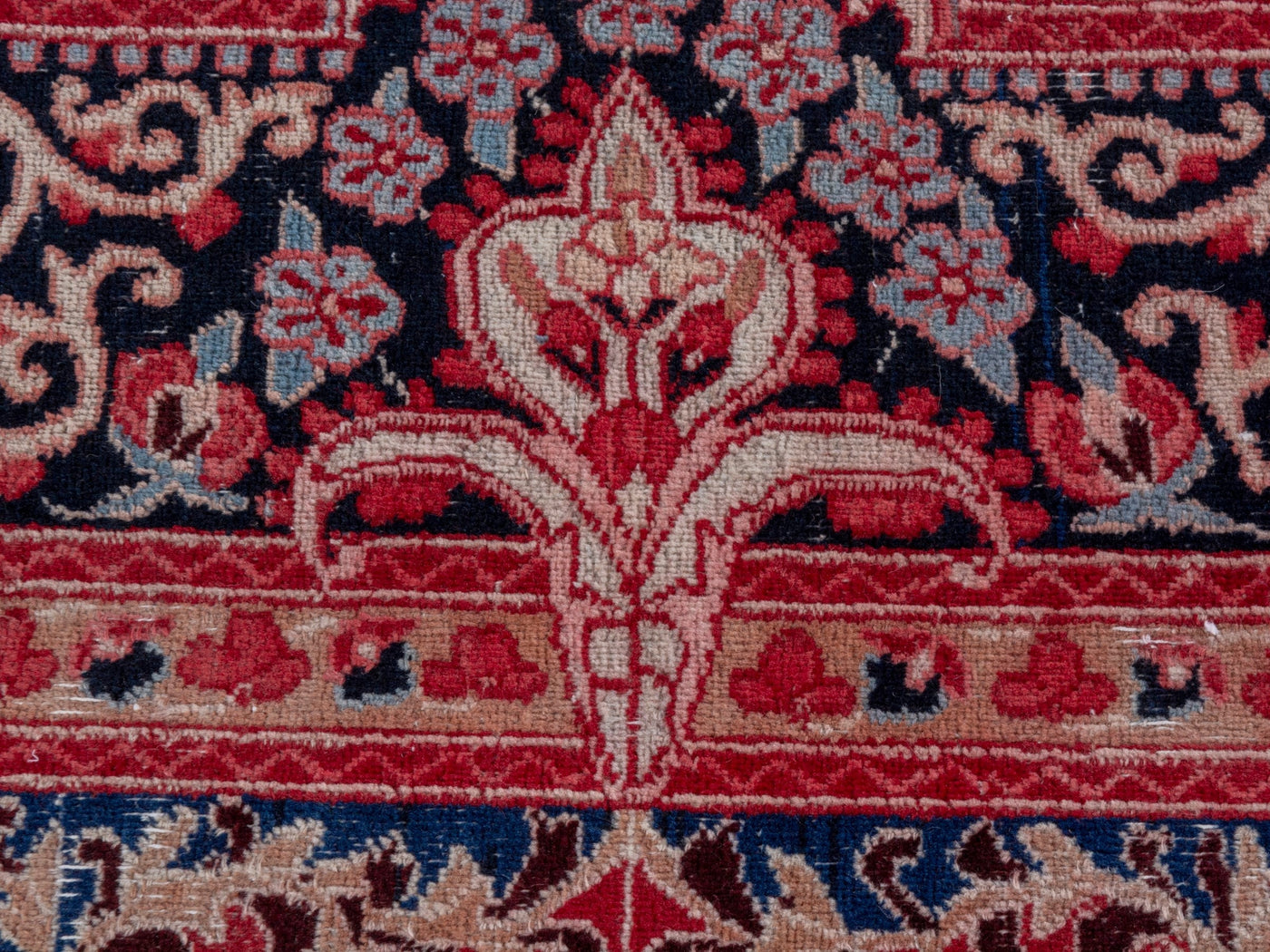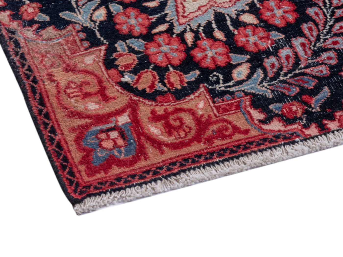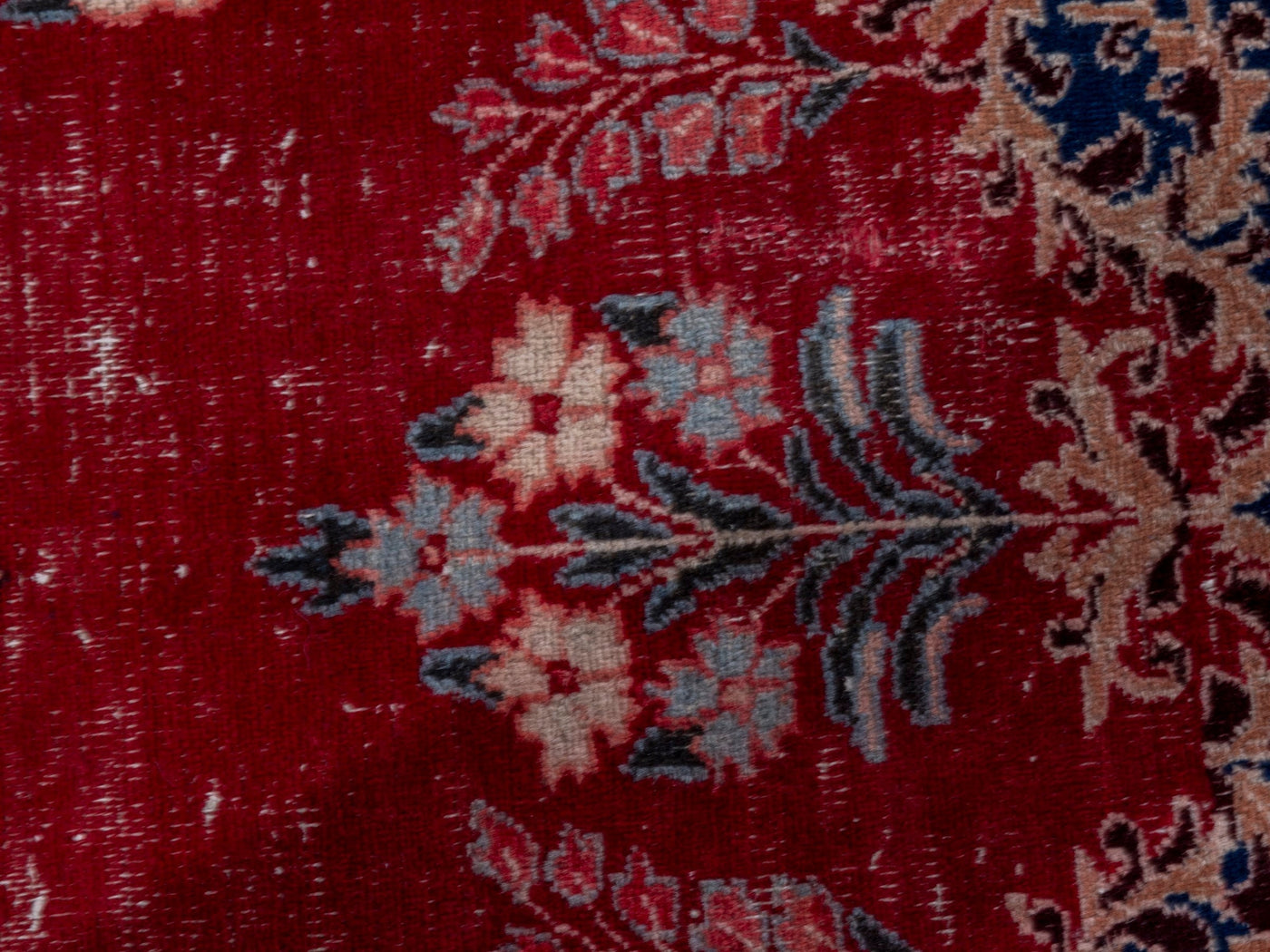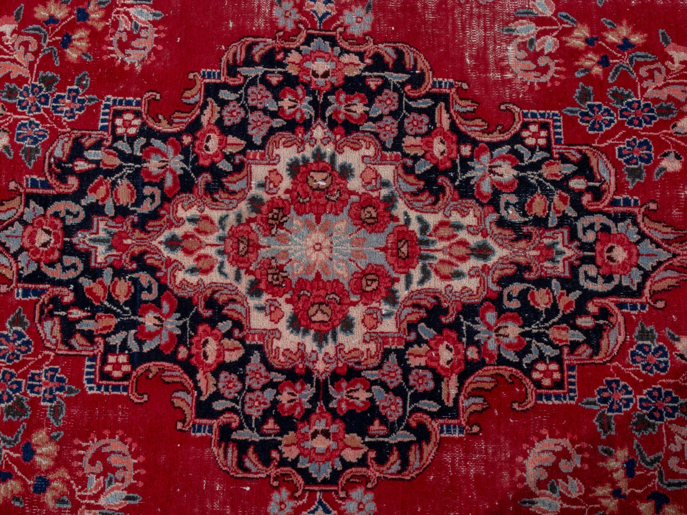 This one-of-a-kind, handmade vintage rug has been carefully restored, cleaned; age-related wear and natural imperfections are present.