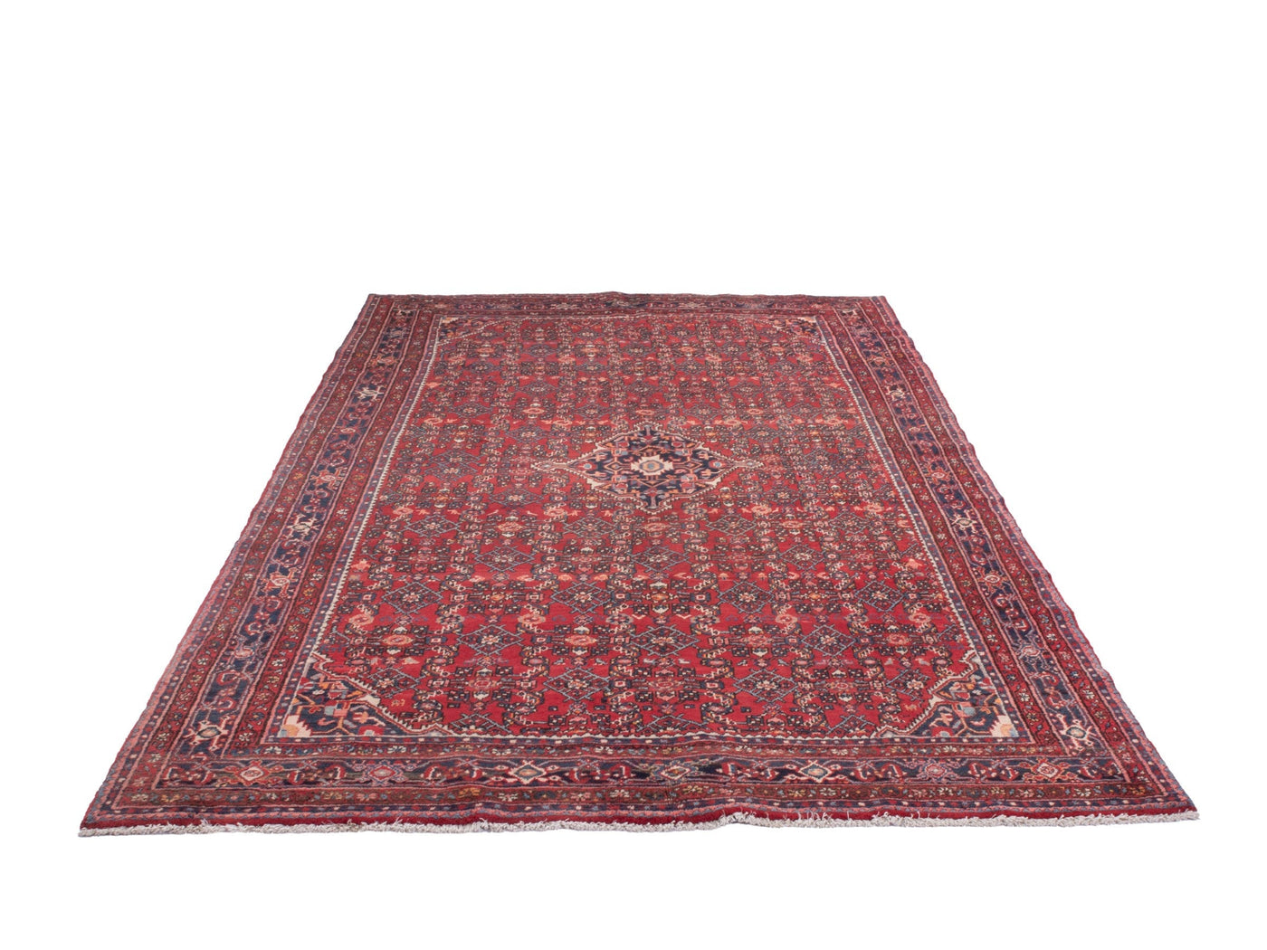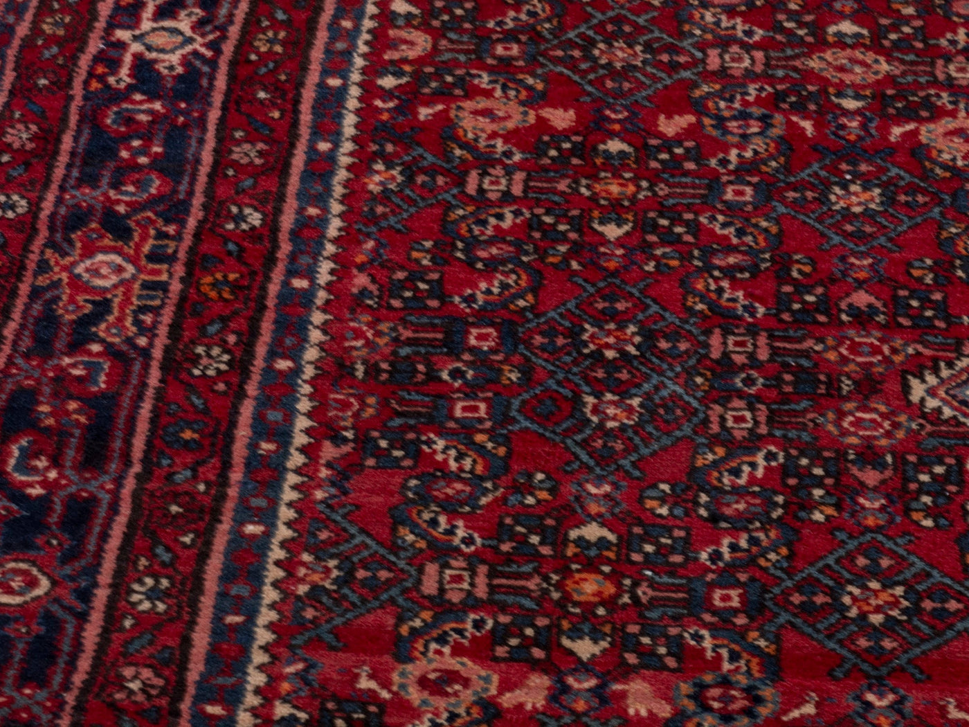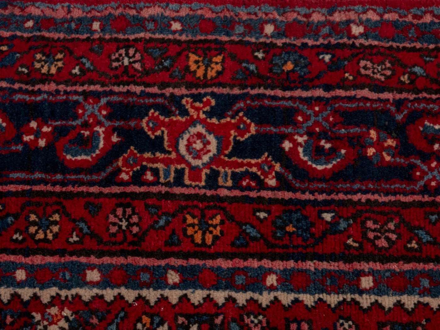 This one-of-a-kind, handmade vintage rug has been carefully restored, cleaned; age-related wear and natural imperfections are present.