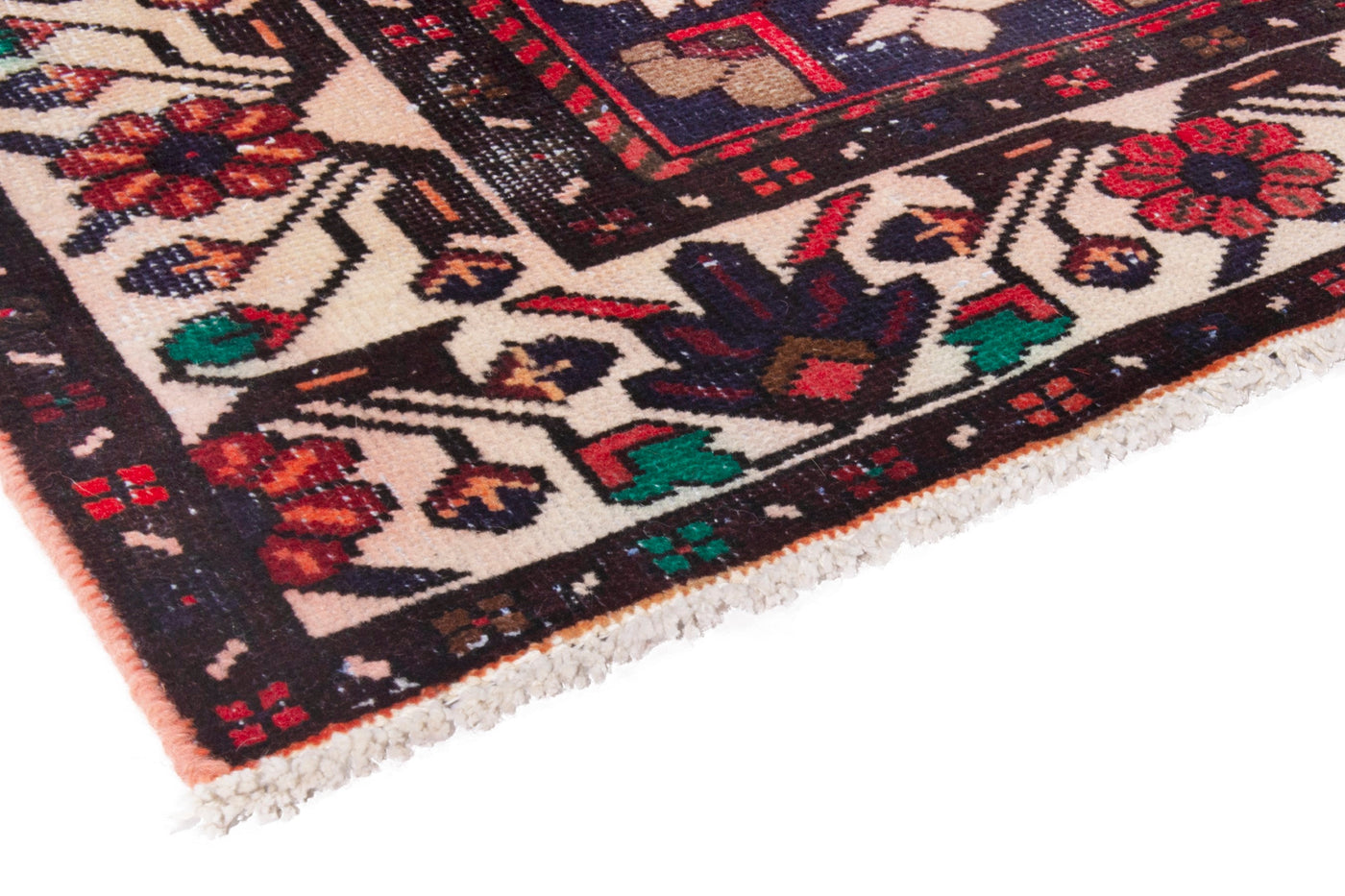 This one-of-a-kind, handmade vintage rug has been carefully restored, cleaned; age-related wear and natural imperfections are present.
