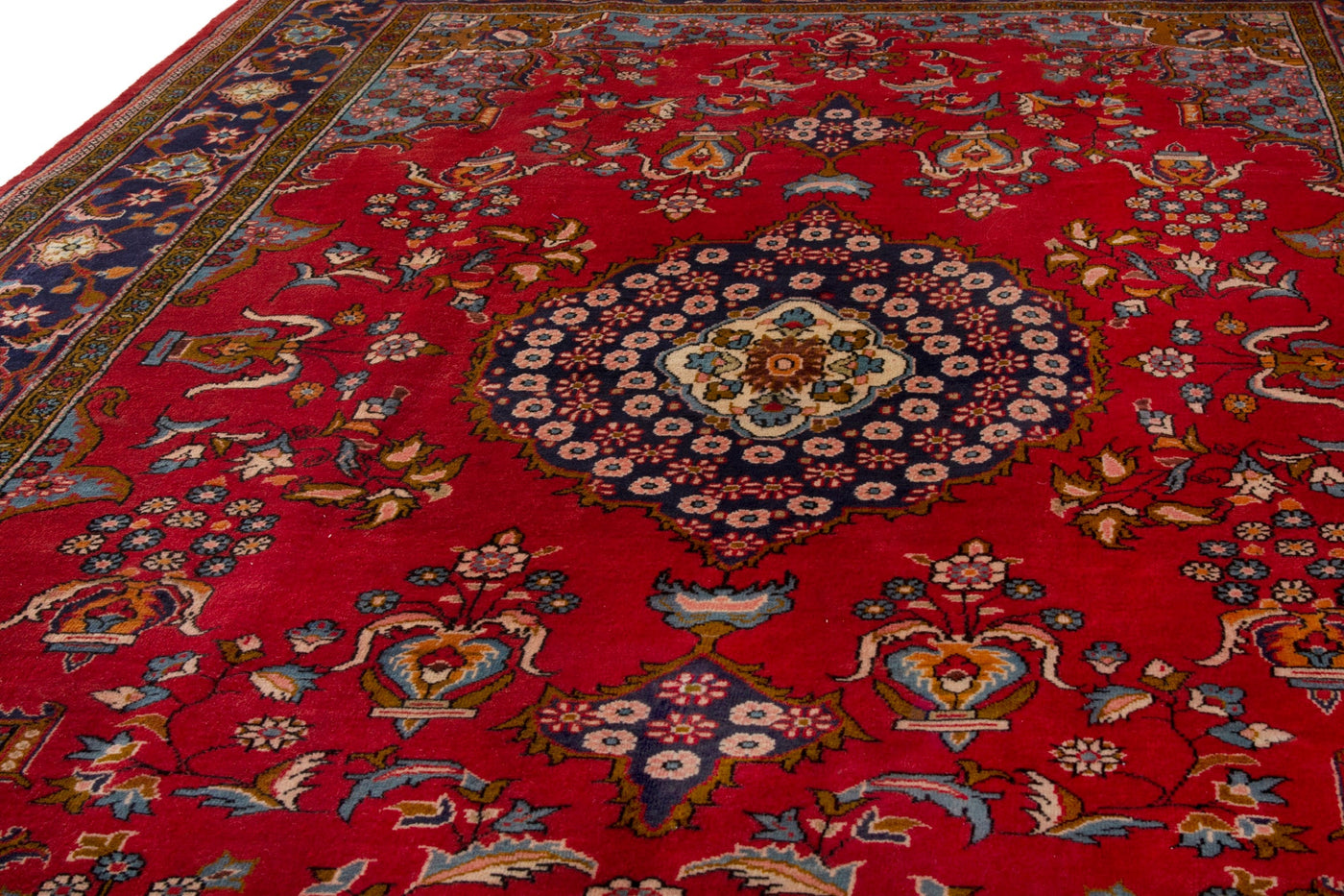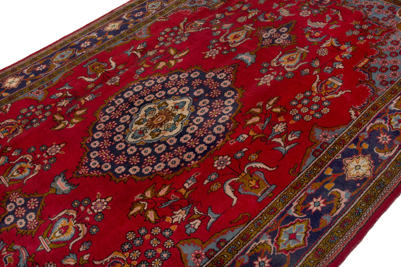 This one-of-a-kind, handmade vintage rug has been carefully restored, cleaned; age-related wear and natural imperfections are present.