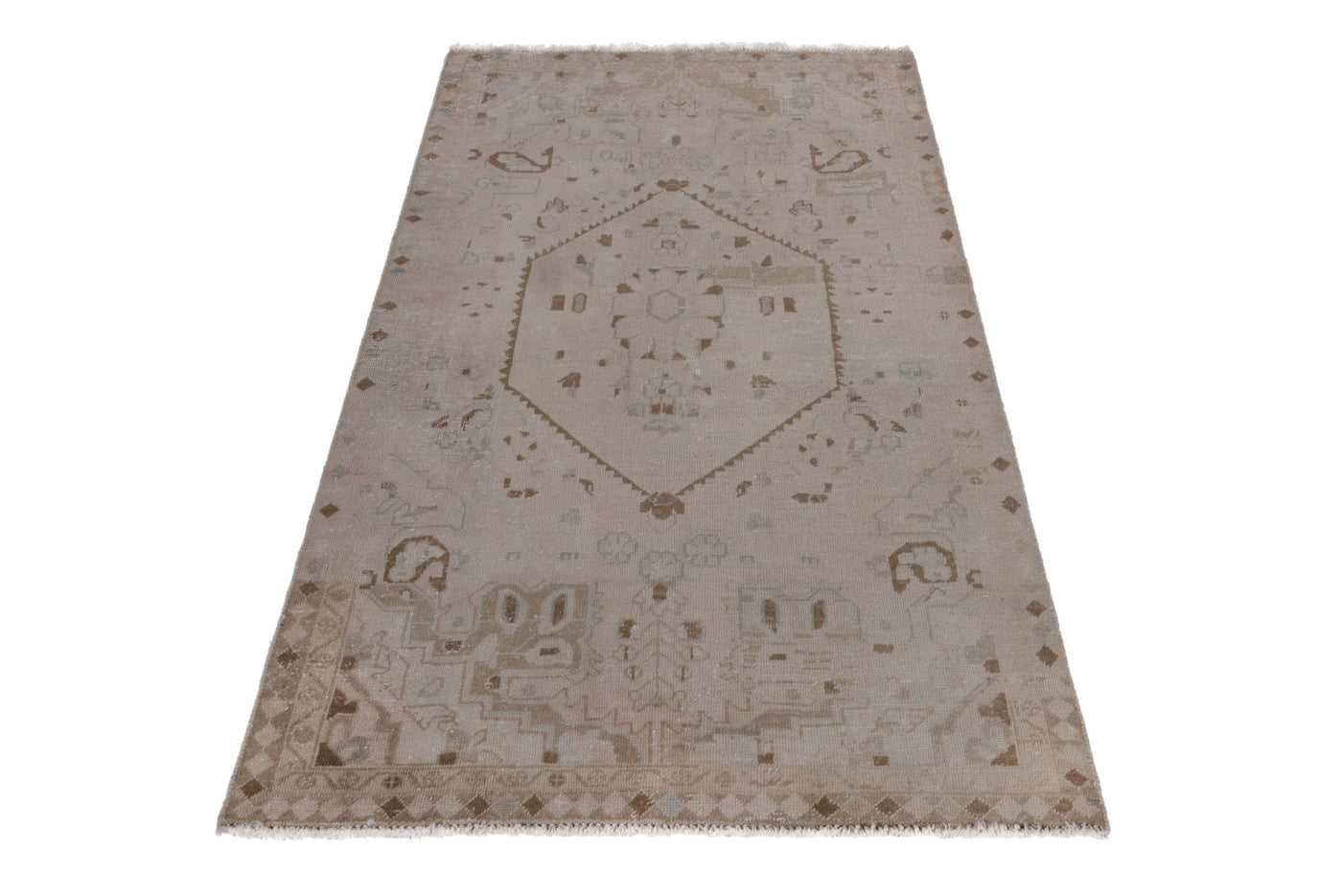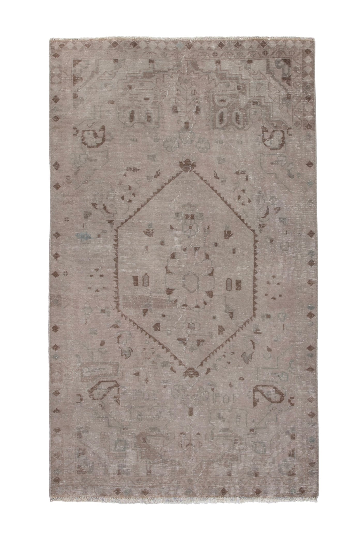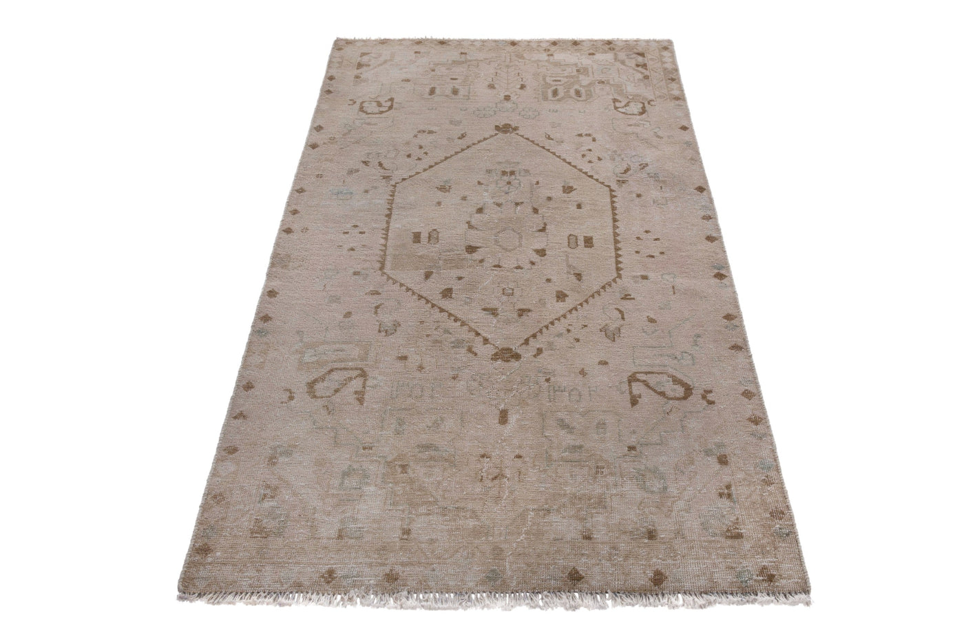 3'11" x 6'9" Neutral Vintage Turkish Area Rug