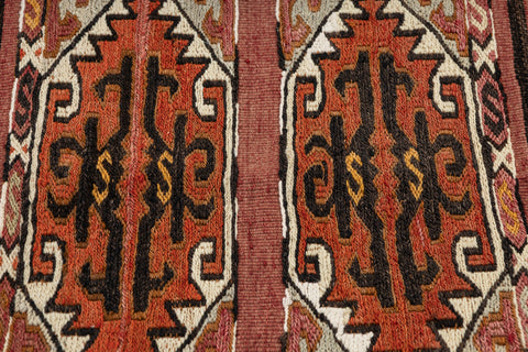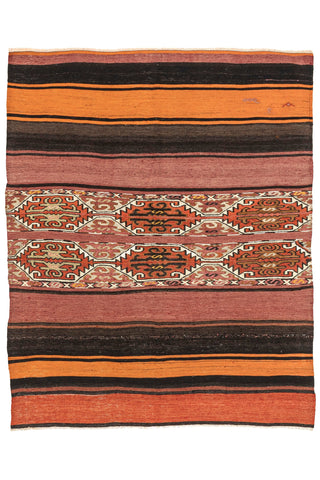 • Turkish vintage kilims were made 100% wool on cotton or wool foundation by female artisans in Anatolian villages in the early and mid-20th Century.