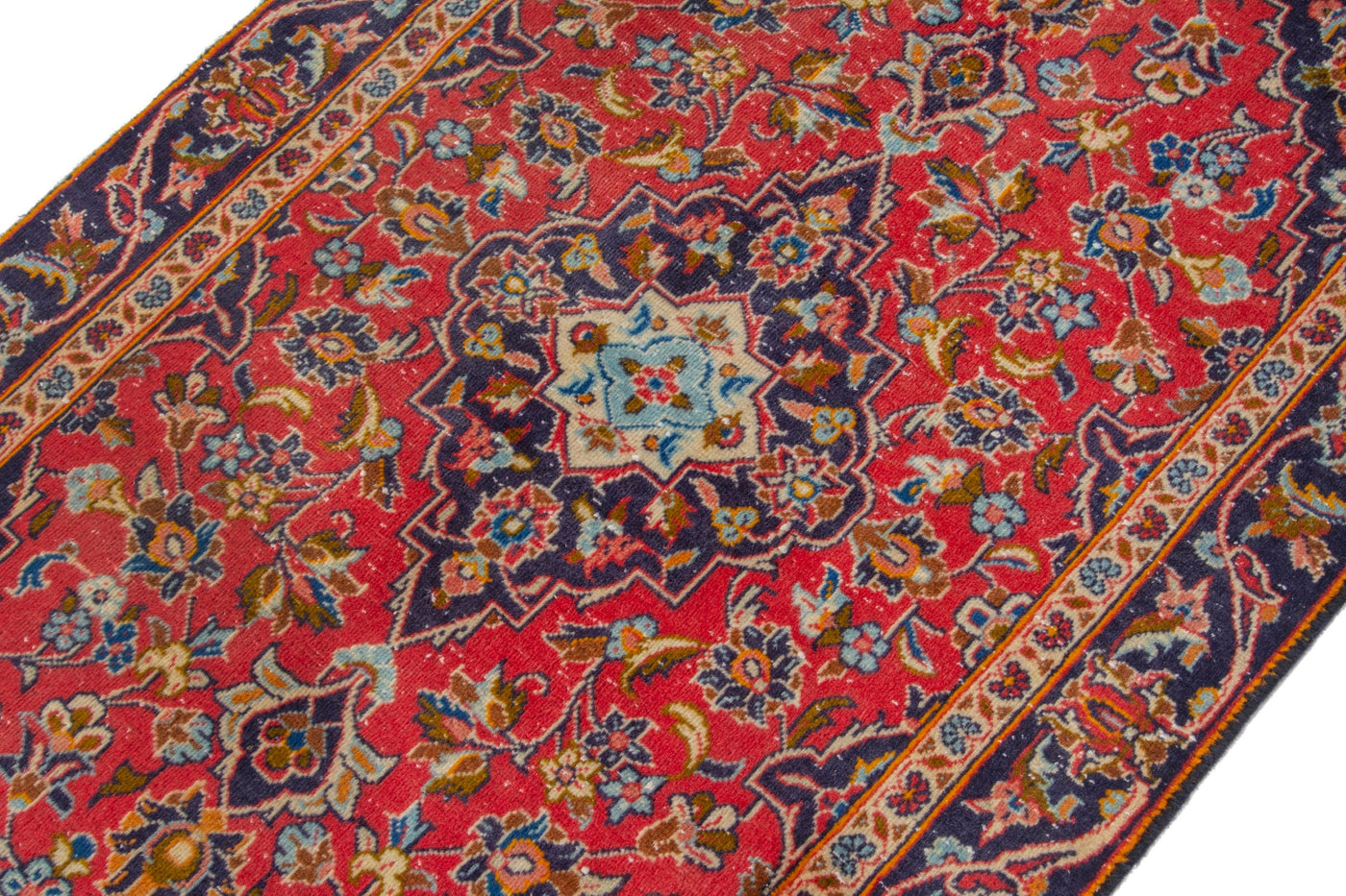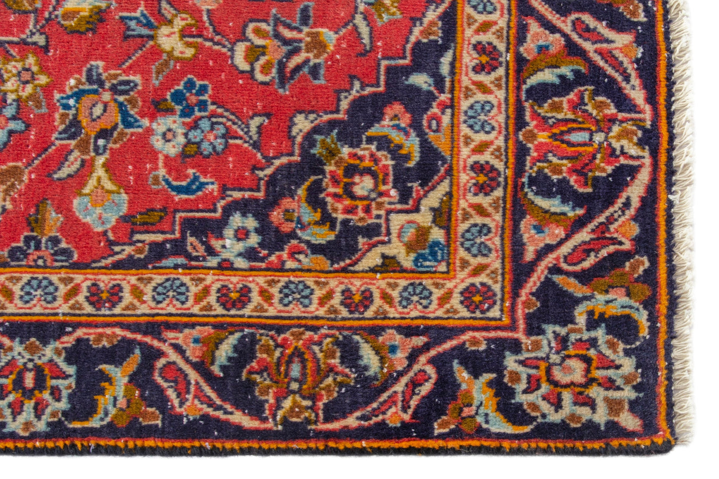 This one-of-a-kind, handmade vintage rug has been carefully restored, cleaned; age-related wear and natural imperfections are present.