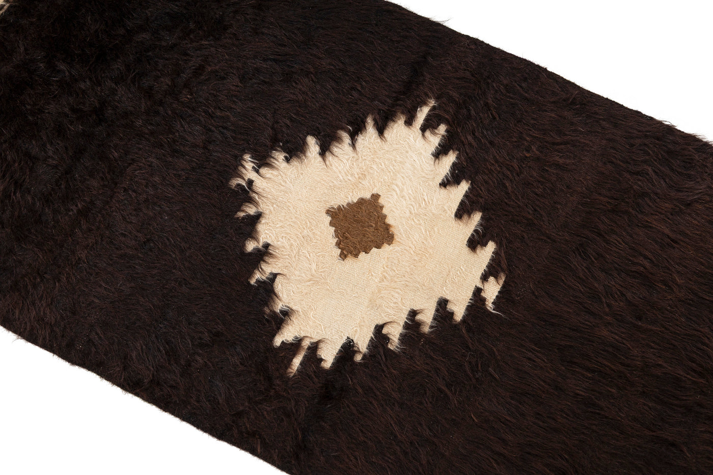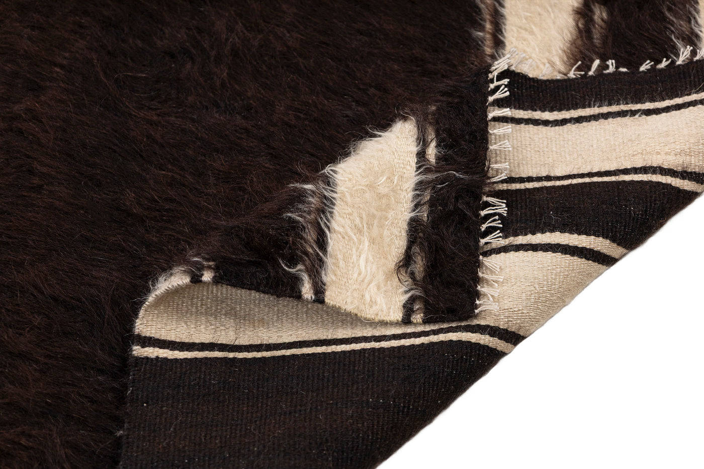 This one-of-a-kind vintage Turkish Kilim was made by hand in Siirt -Anatolian villages in the mid-20th century.