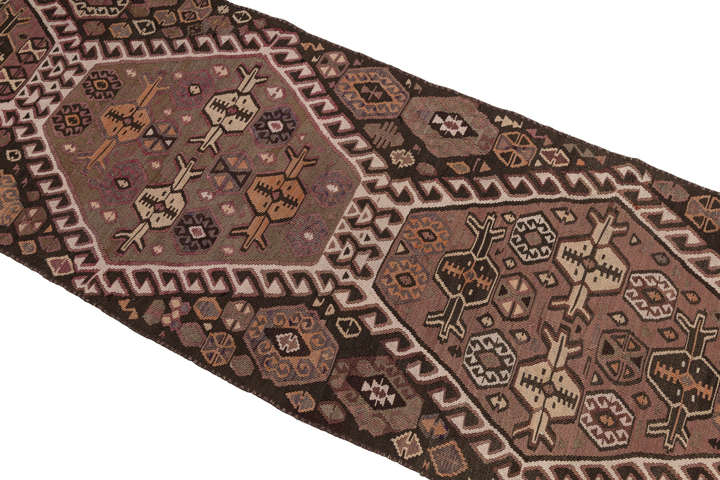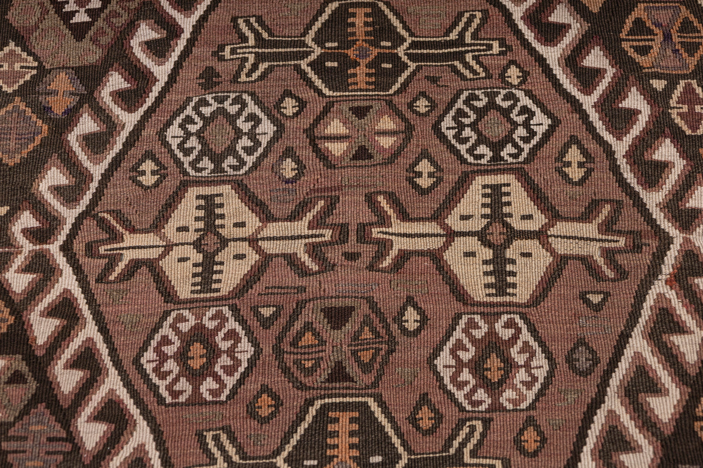 This one-of-a-kind vintage Turkish Kilim was made by hand in Kars -Anatolian villages in the mid-20th century.