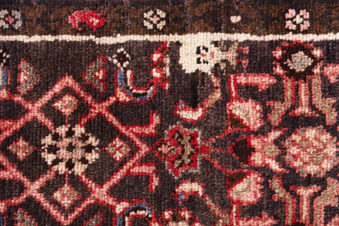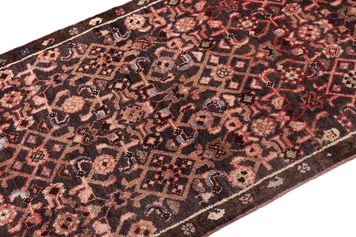 This one-of-a-kind, handmade vintage rug has been carefully restored, cleaned; age-related wear and natural imperfections are present.
