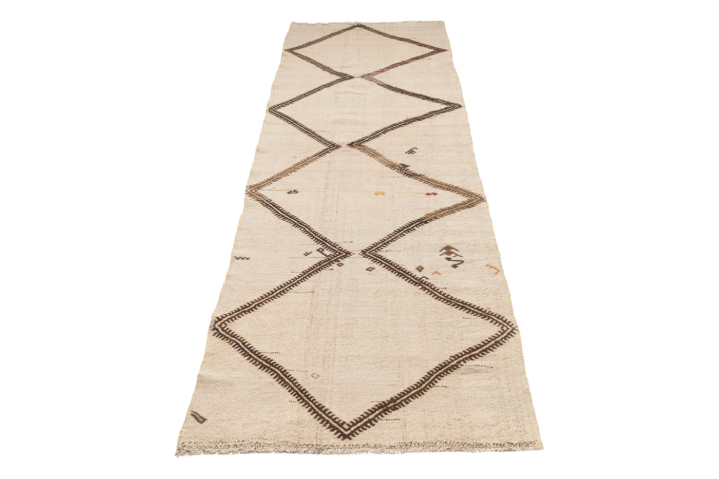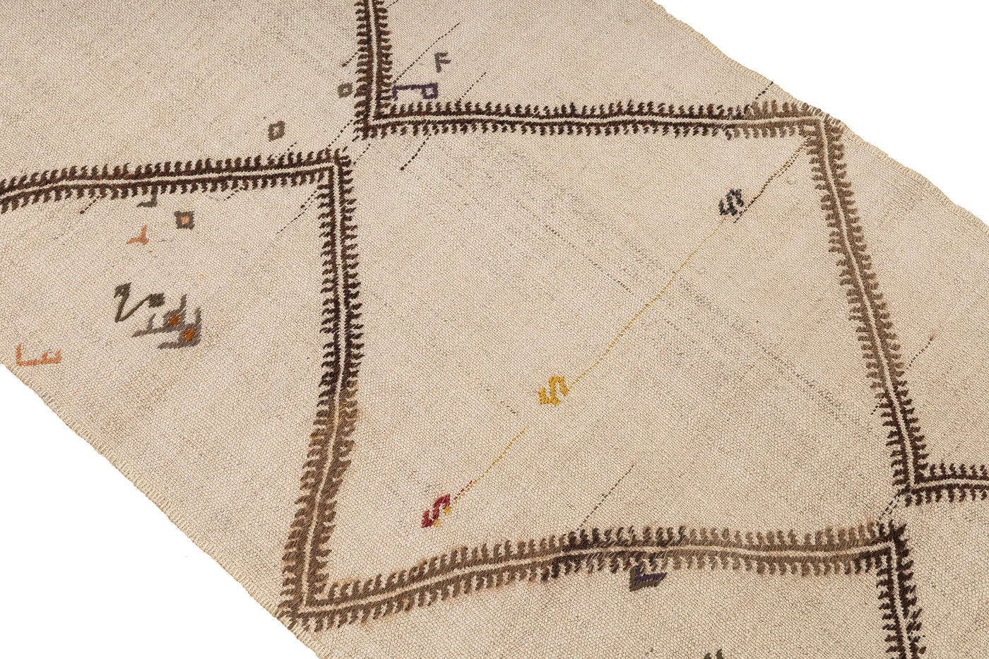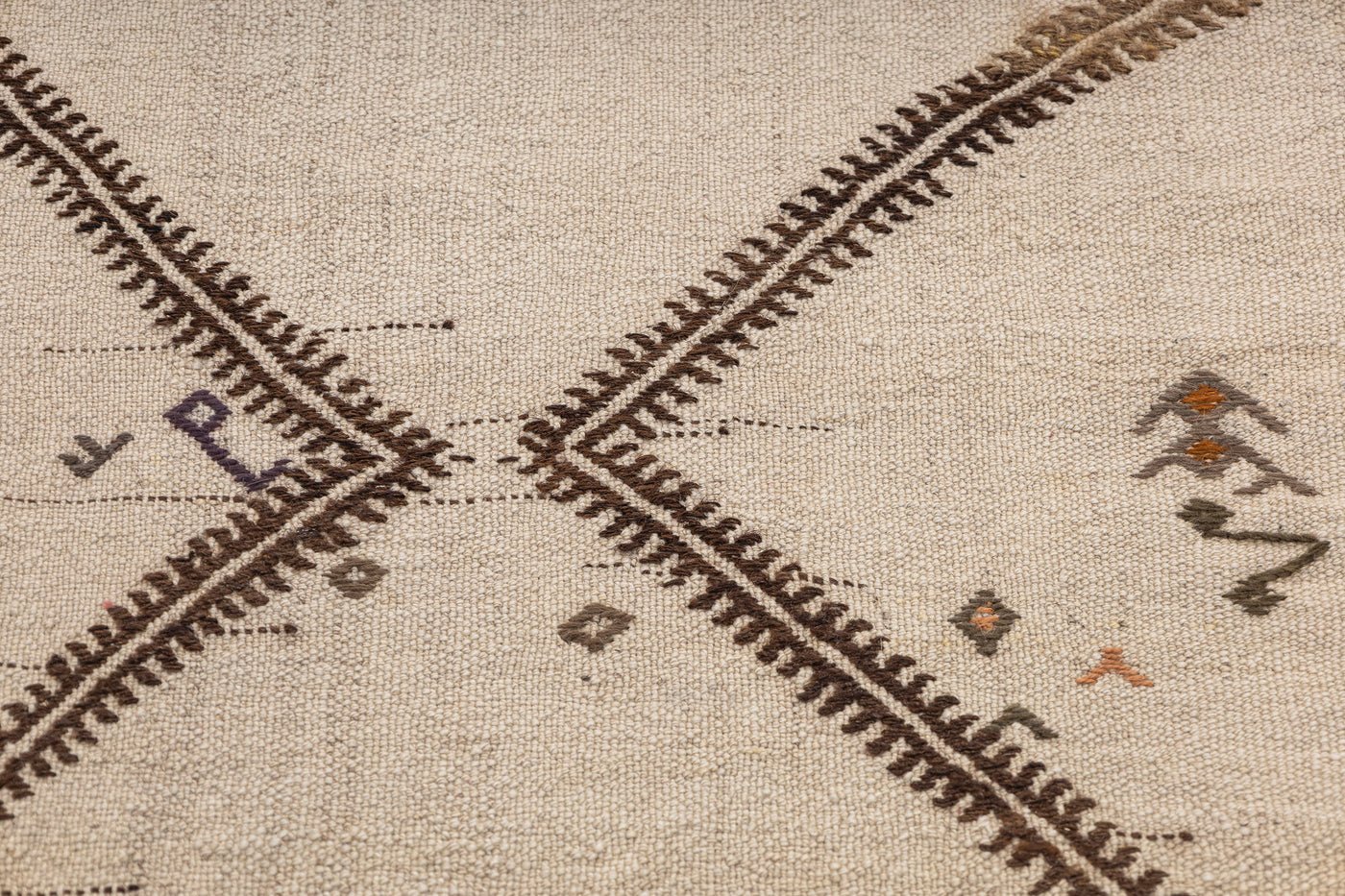 This one-of-a-kind vintage Turkish Kilim was made by hand in Konya -Anatolian villages in the mid-20th century.