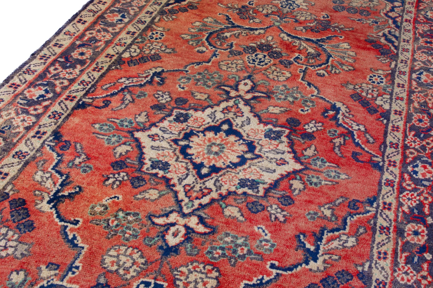 This one-of-a-kind, handmade vintage rug has been carefully restored, cleaned; age-related wear and natural imperfections are present.