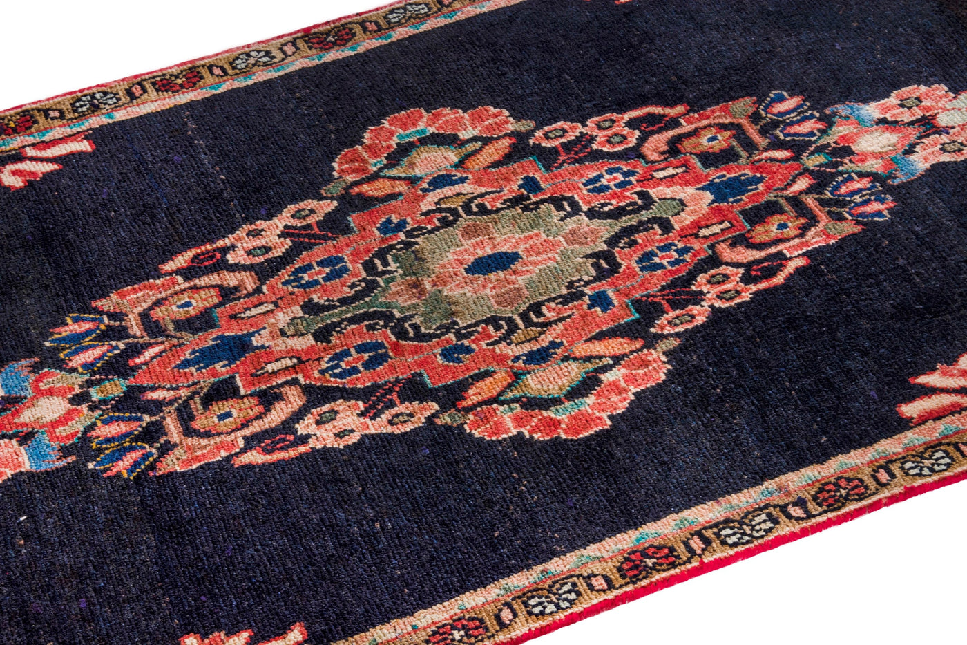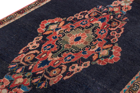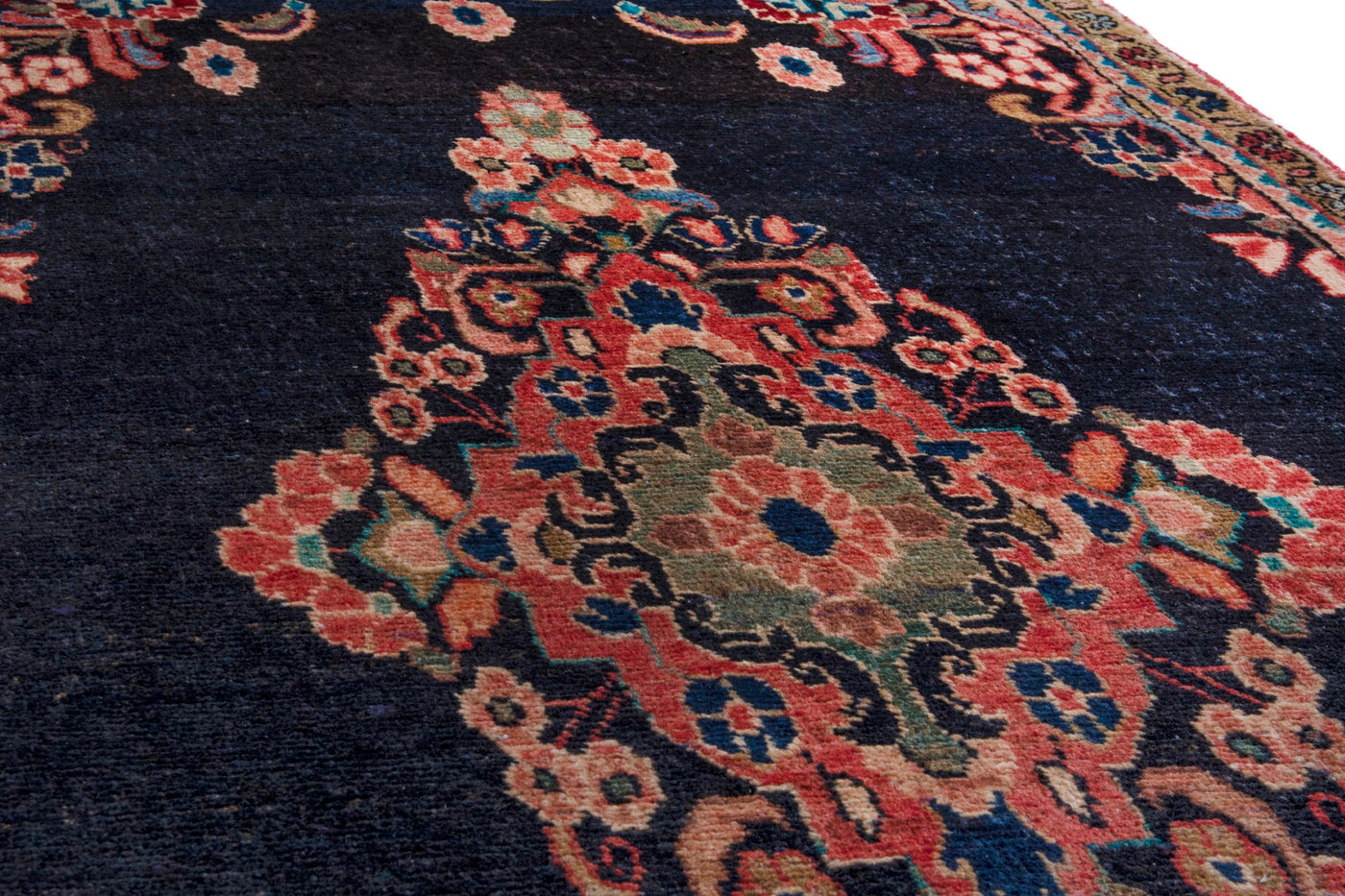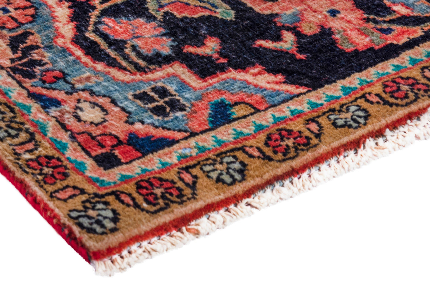 This one-of-a-kind, handmade vintage rug has been carefully restored, cleaned; age-related wear and natural imperfections are present.