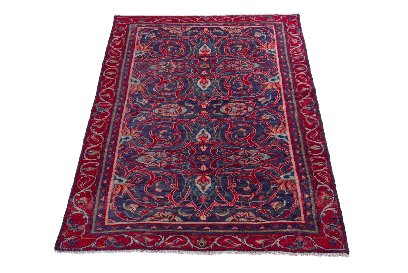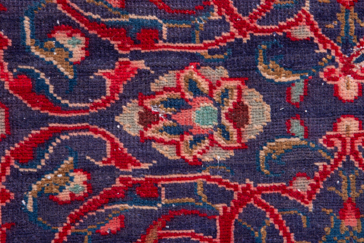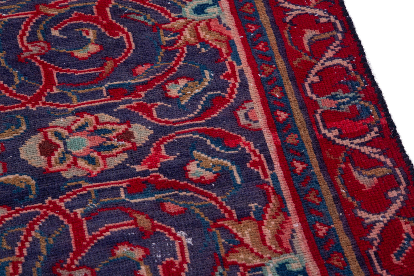 This one-of-a-kind, handmade vintage rug has been carefully restored, cleaned; age-related wear and natural imperfections are present.