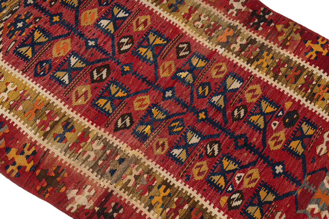 This one-of-a-kind vintage Turkish Kilim was made by hand in Aydin -Anatolian villages in the mid-20th century.