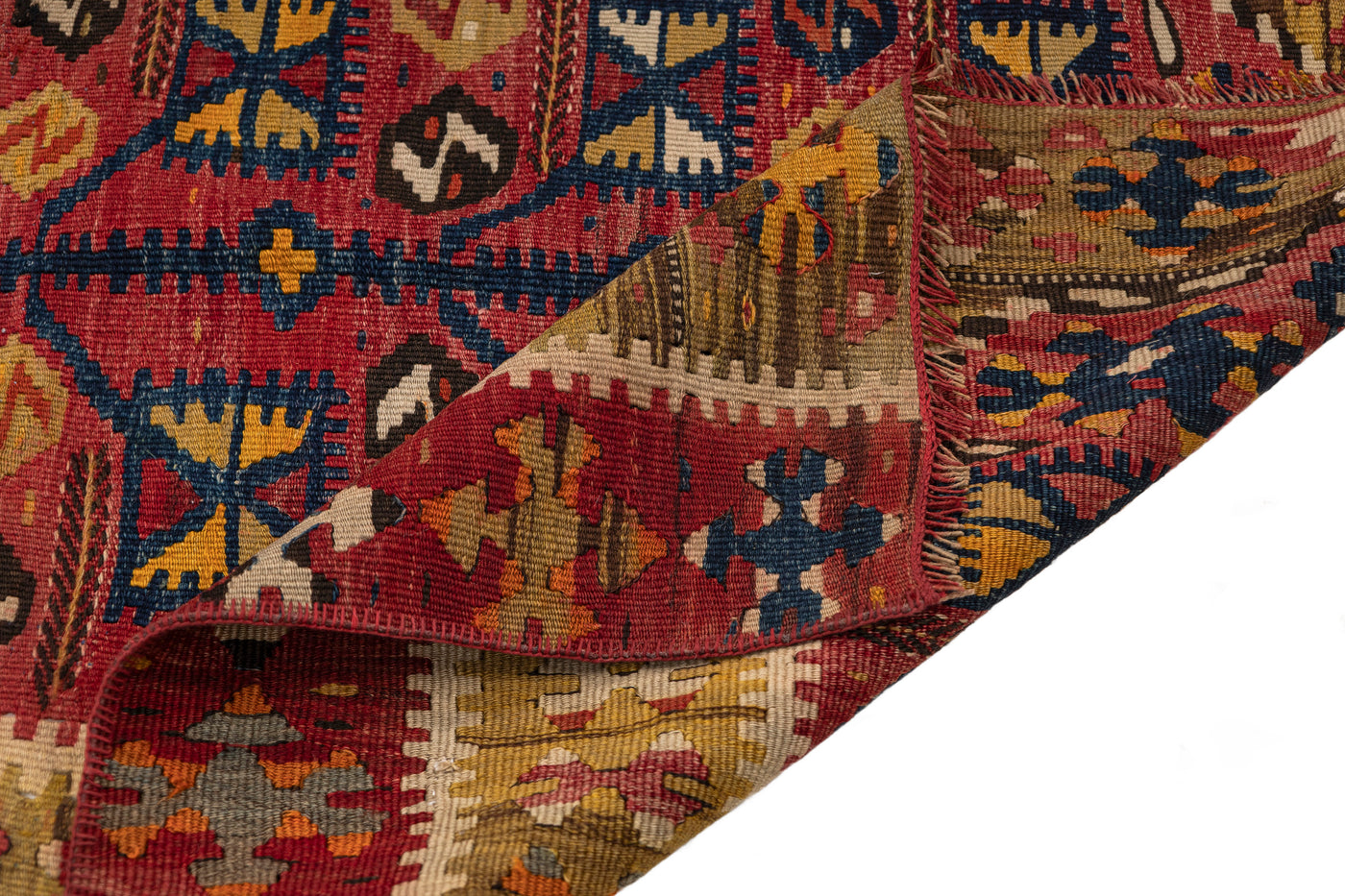 Turkish vintage kilims were made 100% wool on cotton or wool foundation by female artisans in Anatolian villages in the early and mid-20th Century.