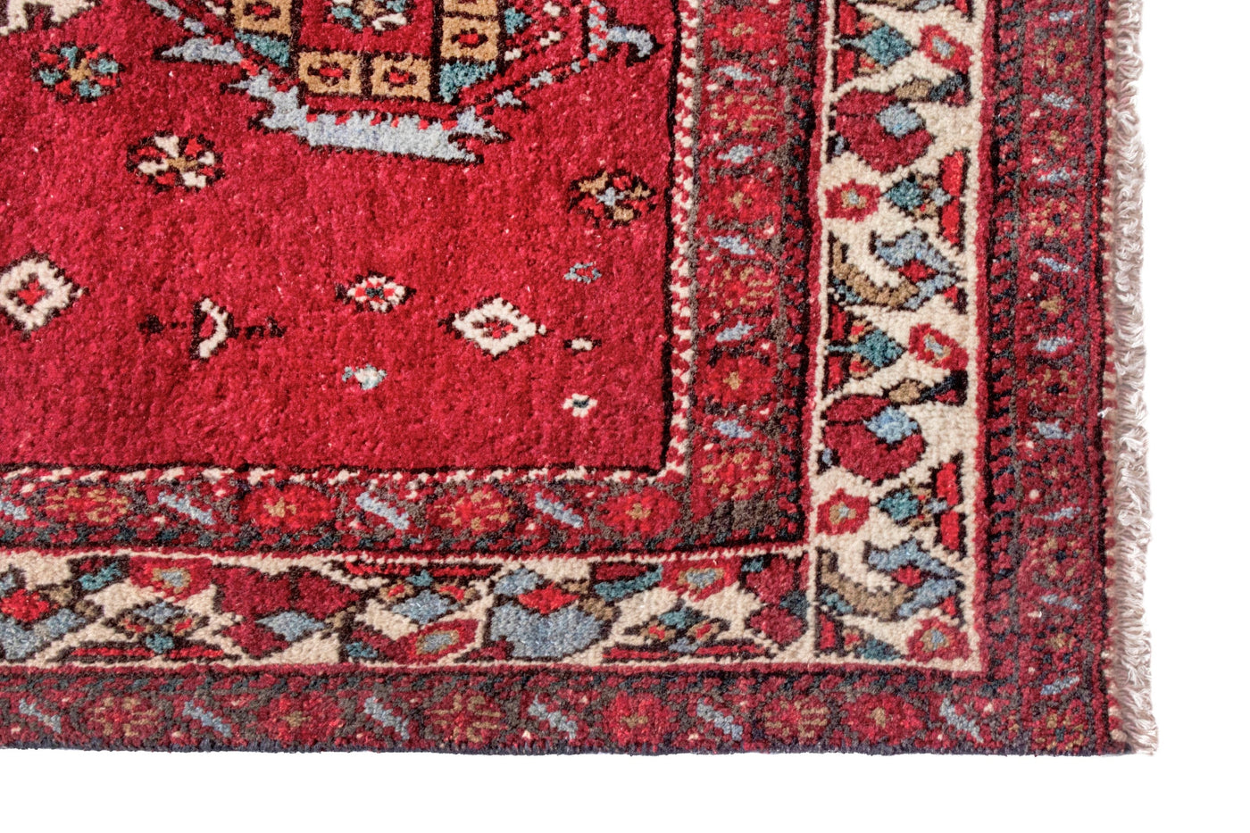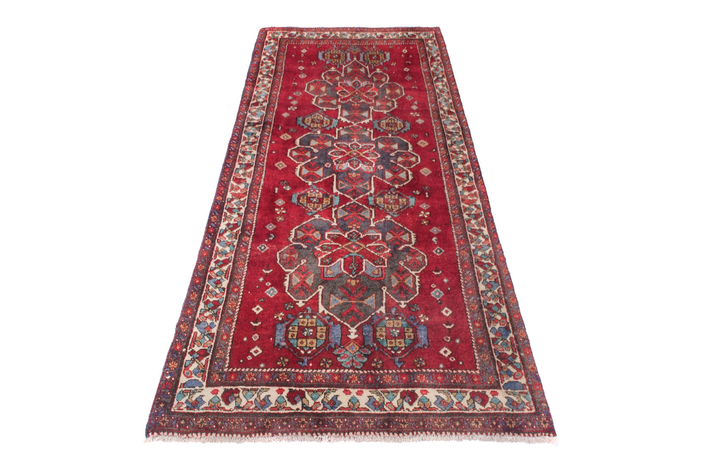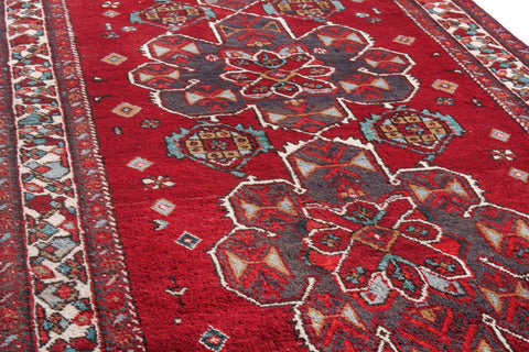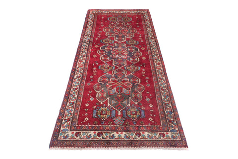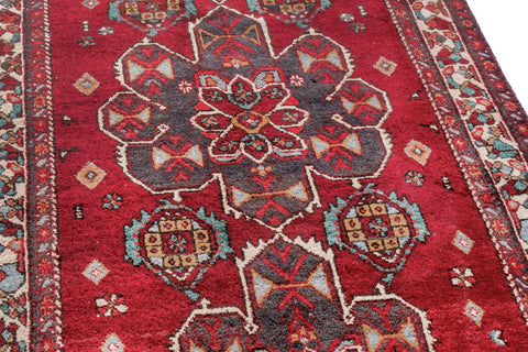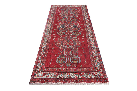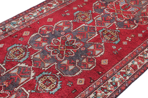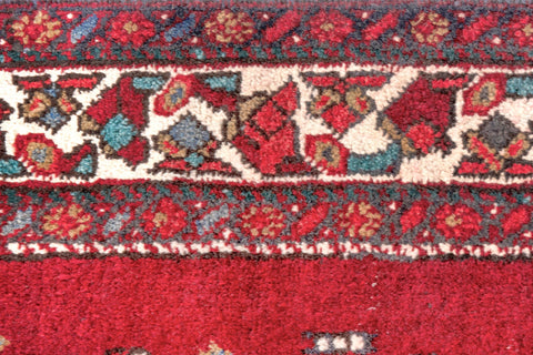 3'11" x 10'10" Handmade Vintage Red Runner Rug