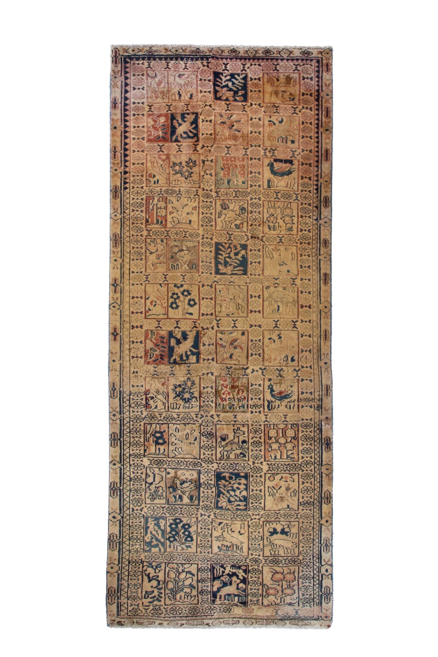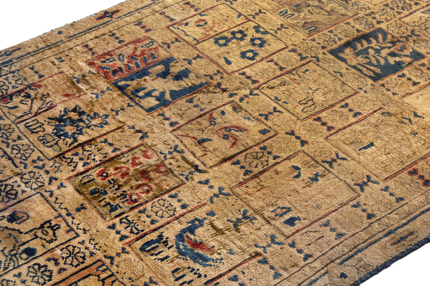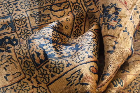 This one-of-a-kind, handmade vintage rug has been carefully restored, cleaned; age-related wear and natural imperfections are present.