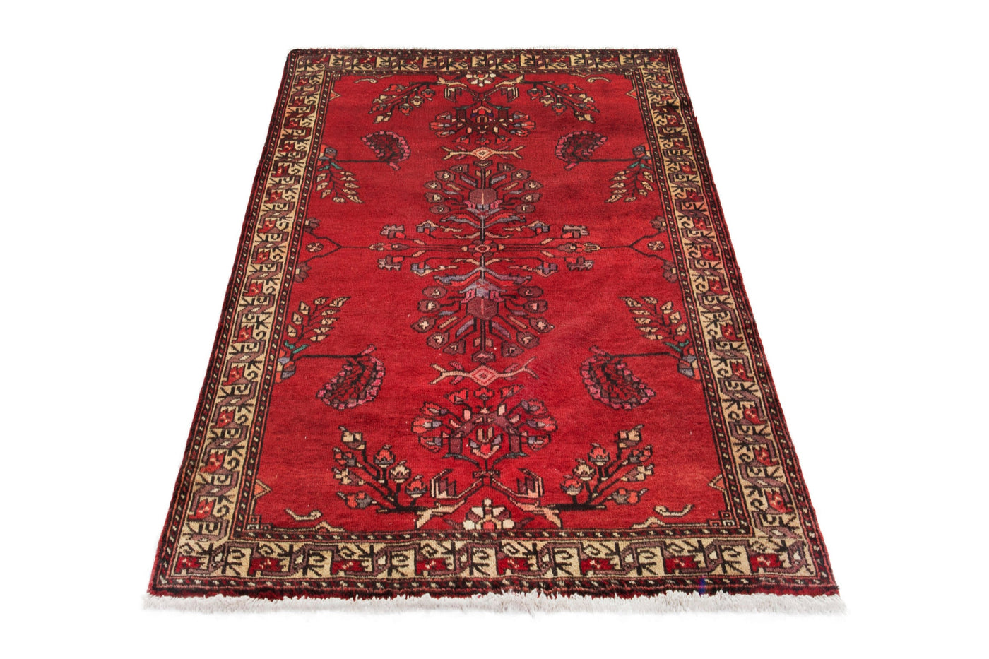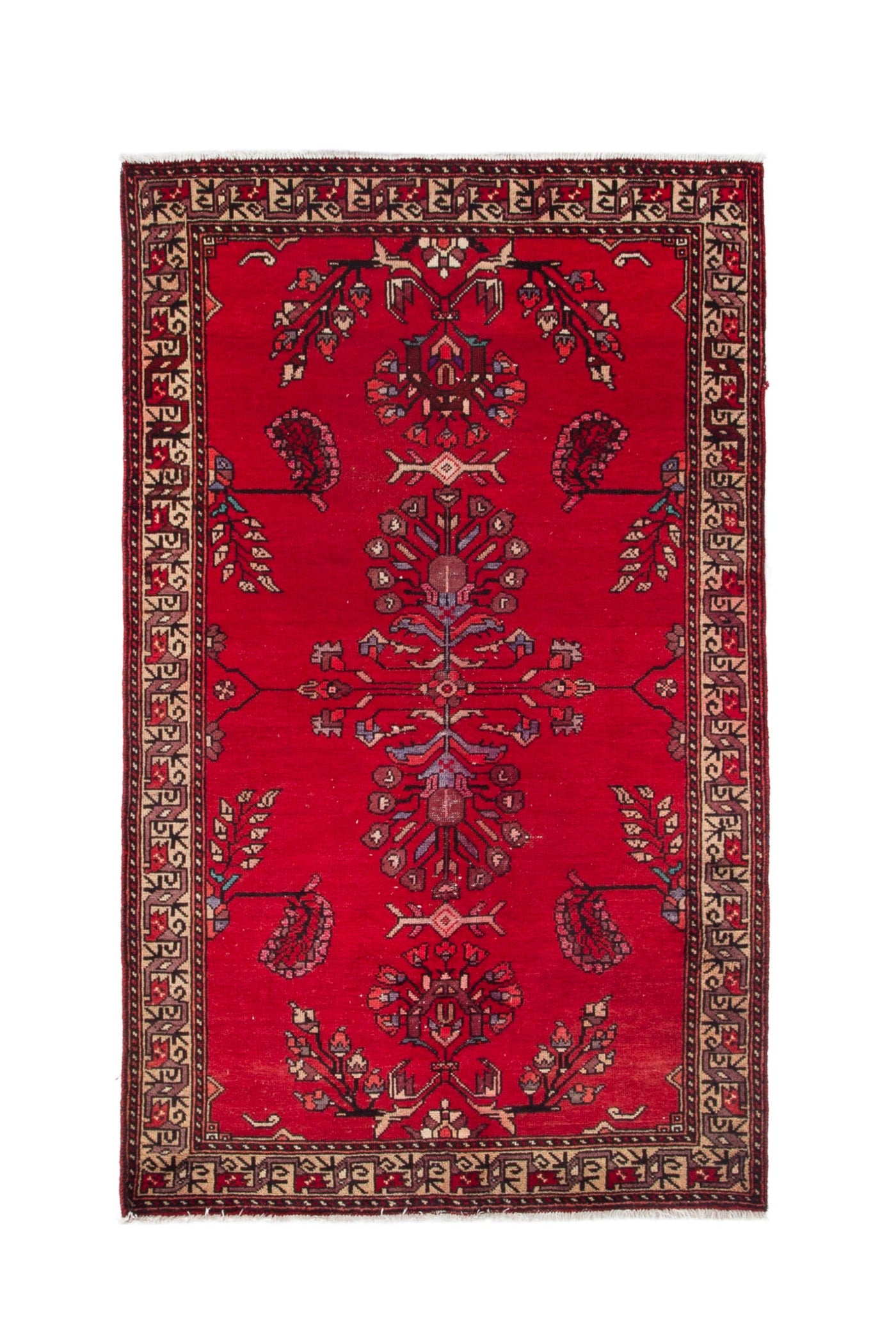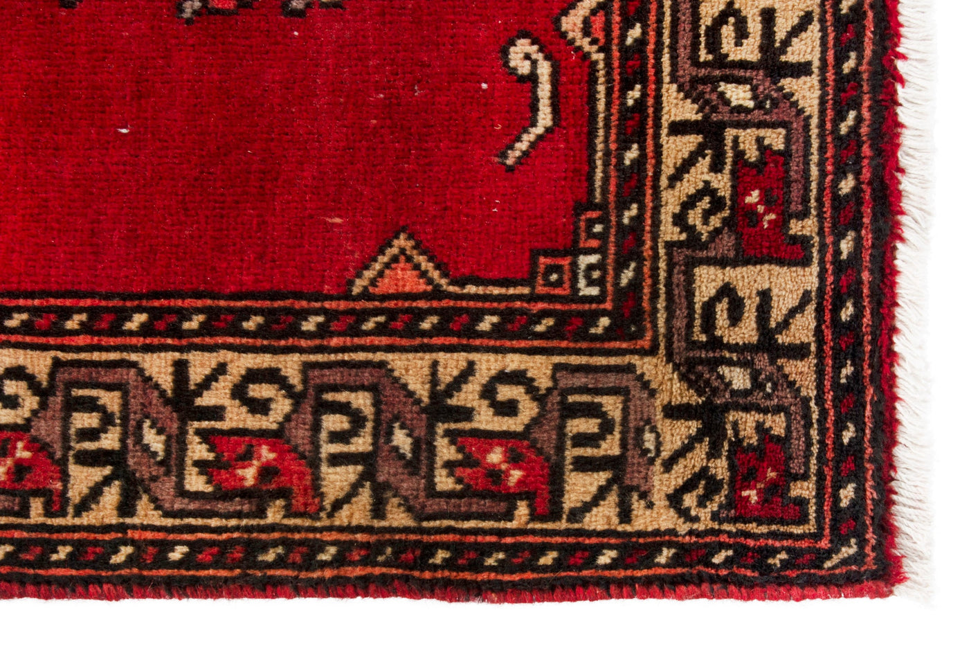 3'11" x 6'9" Handmade Red Vintage Turkish Rug