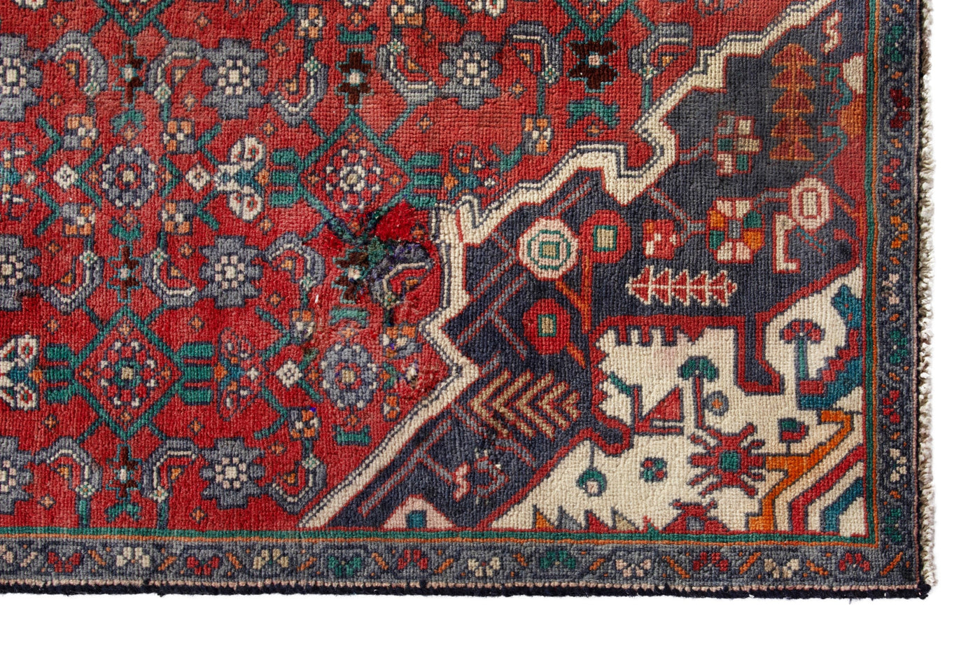 This one-of-a-kind, handmade vintage rug has been carefully restored, cleaned; age-related wear and natural imperfections are present.