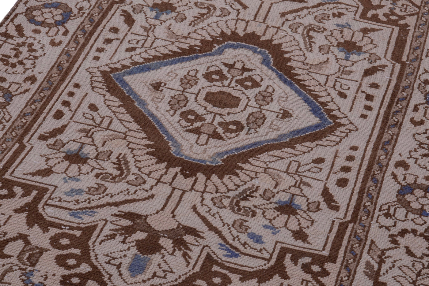 This one-of-a-kind, handmade vintage rug has been carefully restored, cleaned; age-related wear and natural imperfections are present.