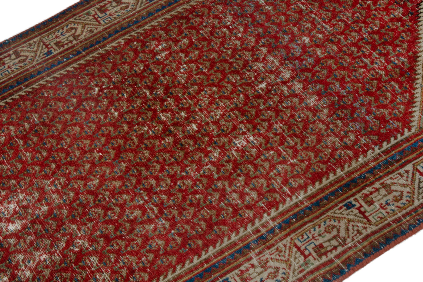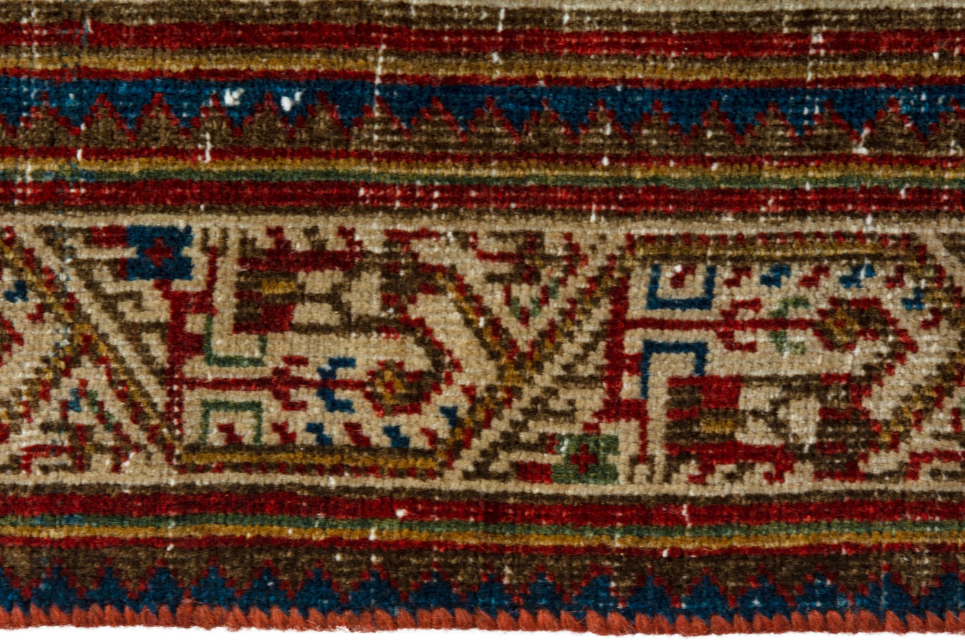 This one-of-a-kind, handmade vintage rug has been carefully restored, cleaned; age-related wear and natural imperfections are present.