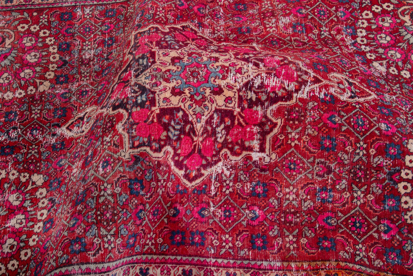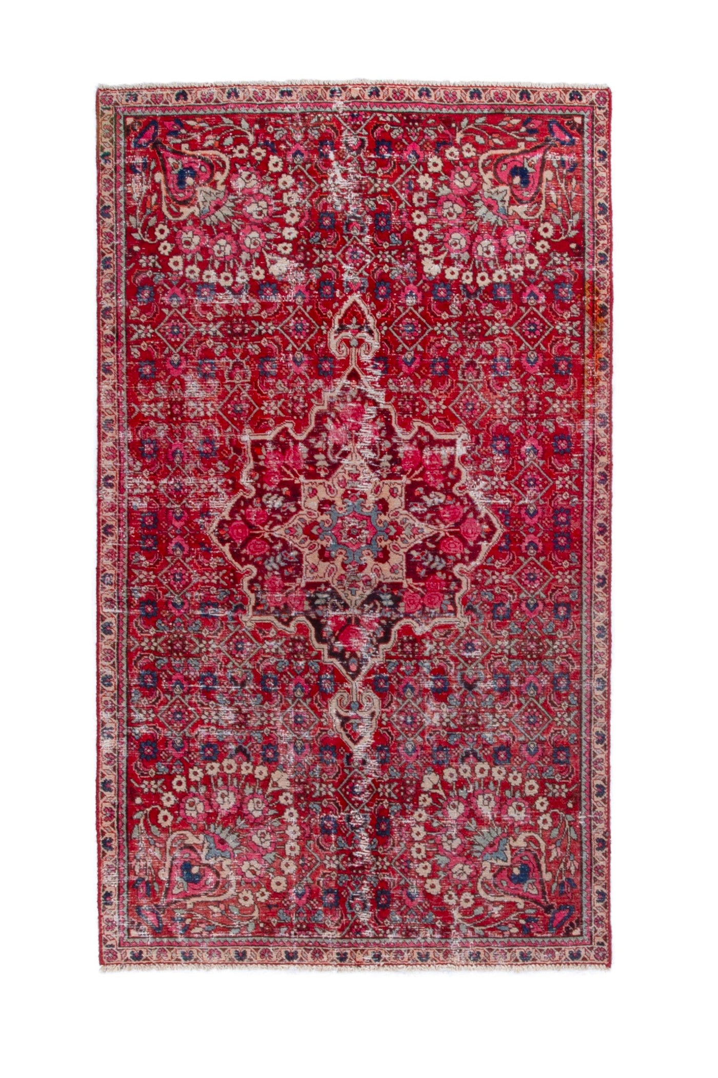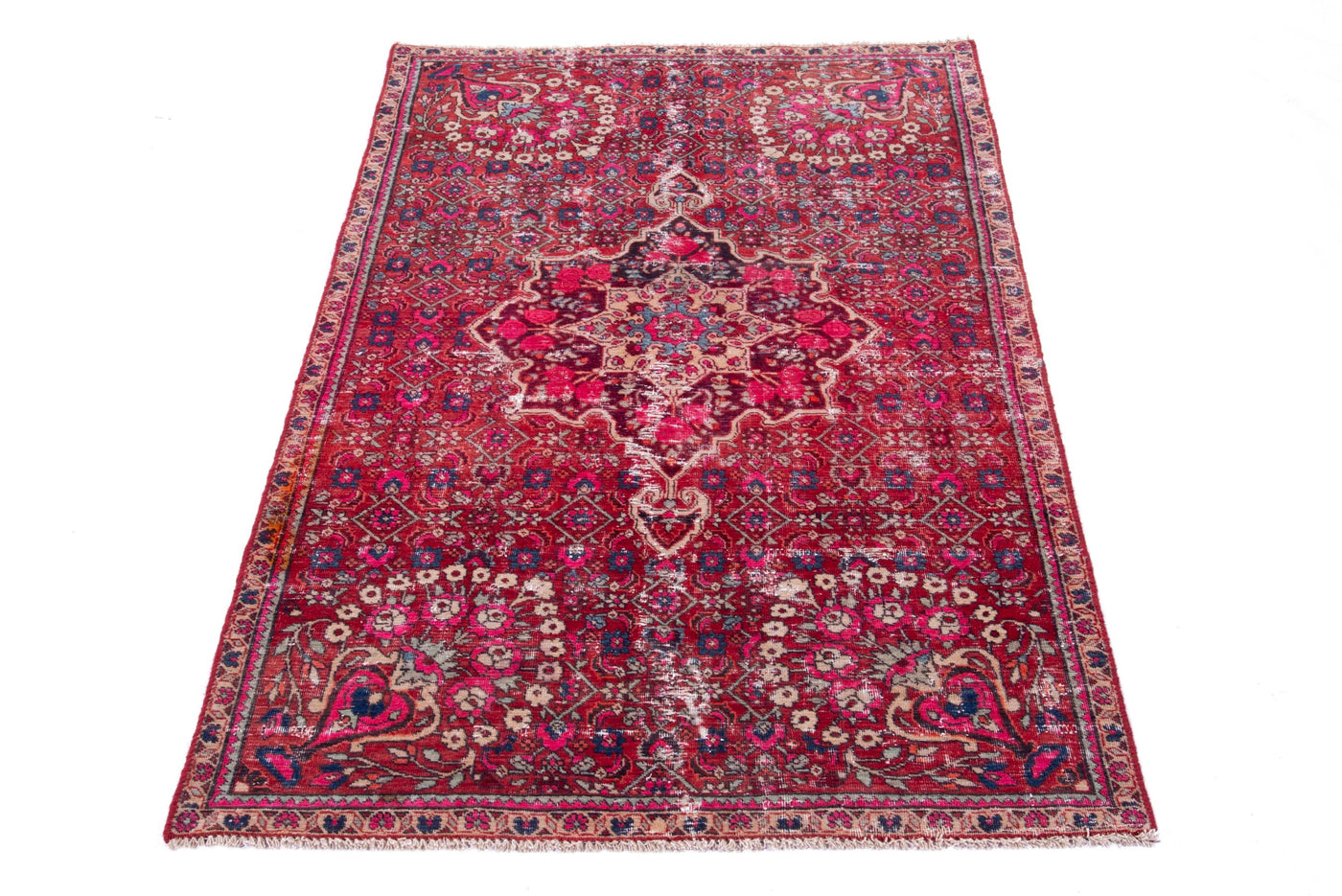 This one-of-a-kind, handmade vintage rug has been carefully restored, cleaned; age-related wear and natural imperfections are present.