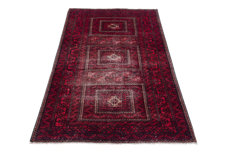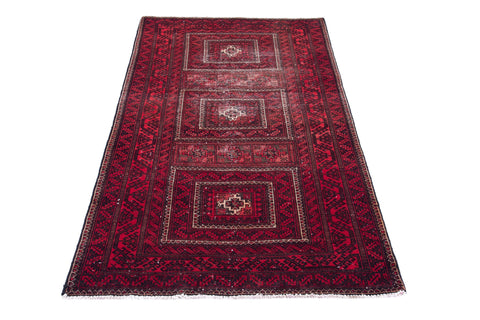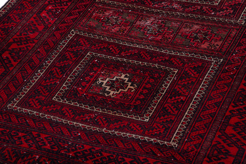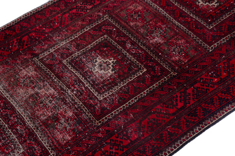 3'3" x 6' Vintage Geometric Design Red Small Rug