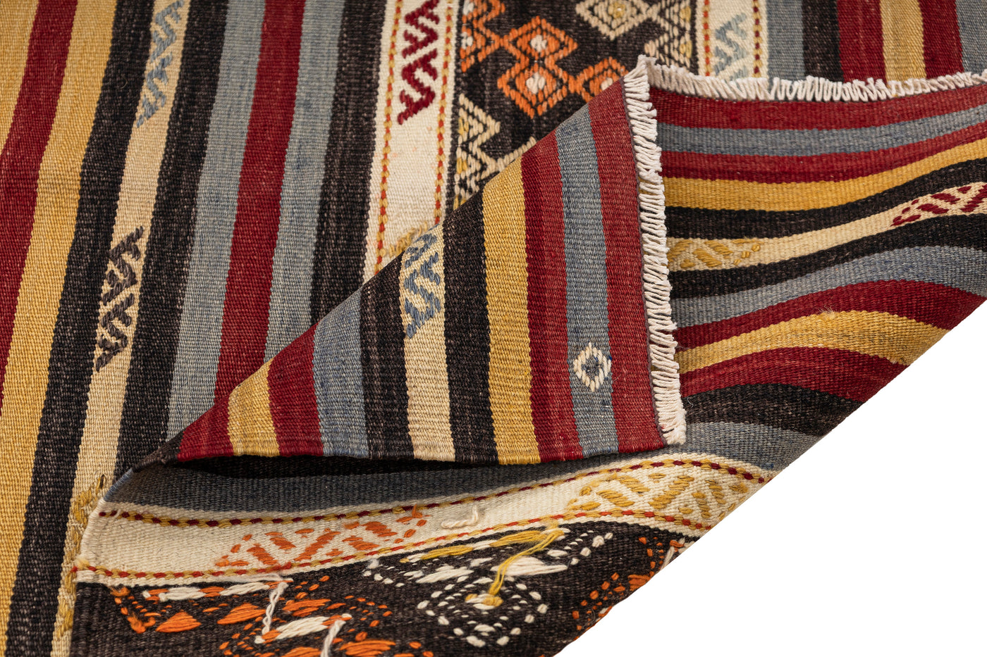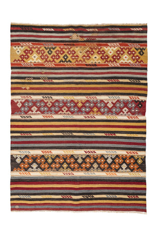 Every authentic Turkish Kilim has a story. Weaving a Kilim is not much different from drawing a picture on the canvas for them. Artisans portray their feelings and mental worlds on the rug while using colors and motifs.