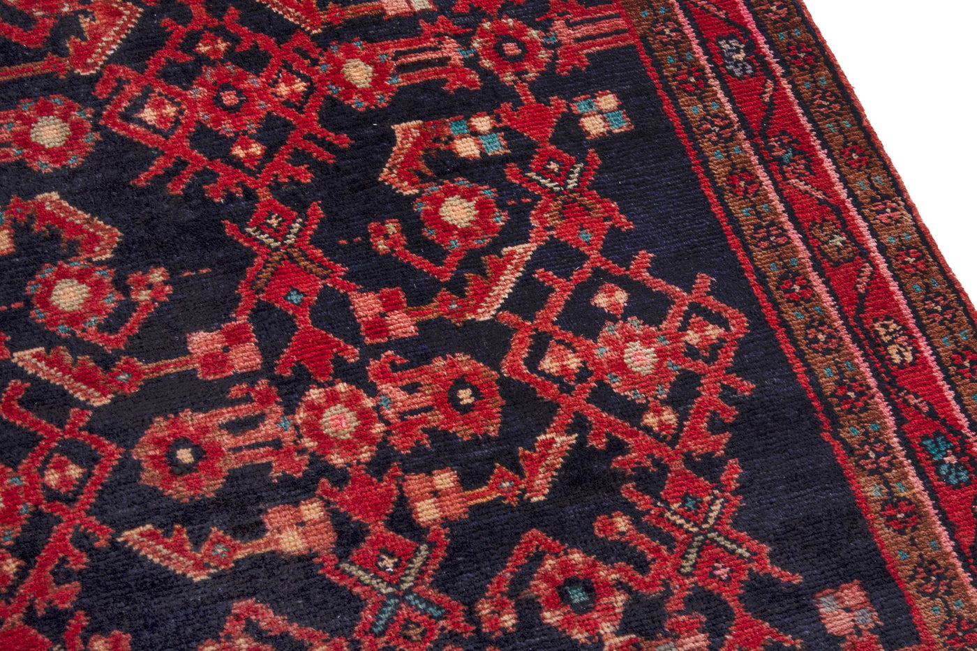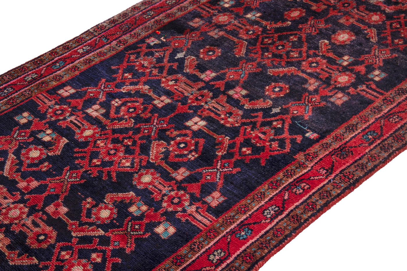 This one-of-a-kind, handmade vintage rug has been carefully restored, cleaned; age-related wear and natural imperfections are present.
