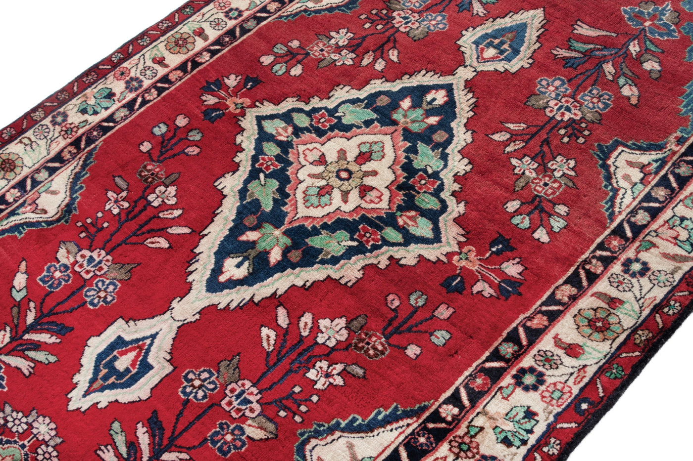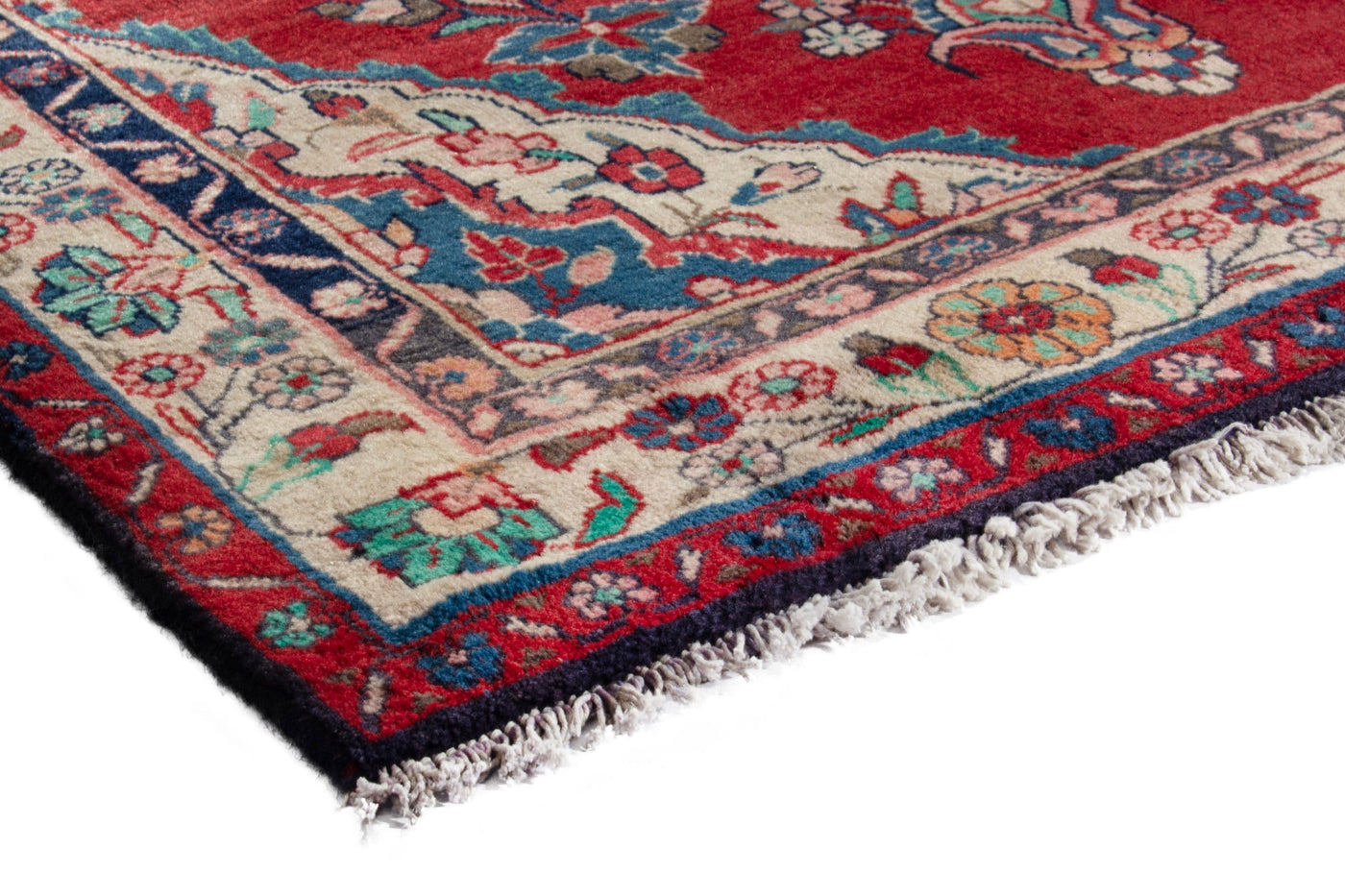 This one-of-a-kind, handmade vintage rug has been carefully restored, cleaned; age-related wear and natural imperfections are present.