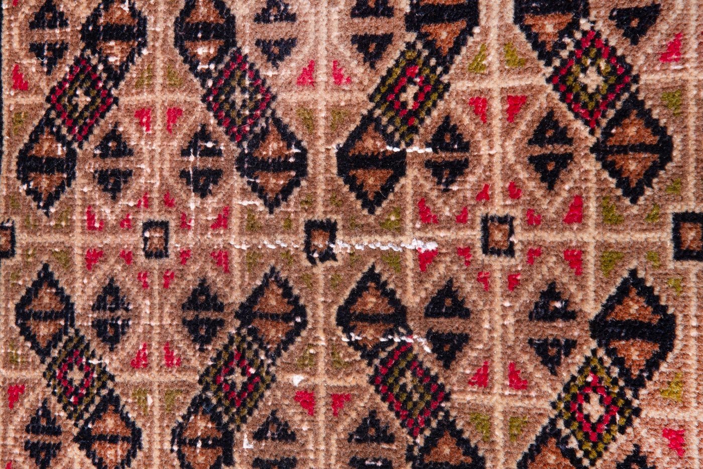 This one-of-a-kind, handmade vintage rug has been carefully restored, cleaned; age-related wear and natural imperfections are present.