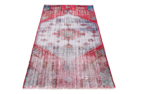 2'9" x 5'9" Vintage Small Bathroom Kitchen Red Rug