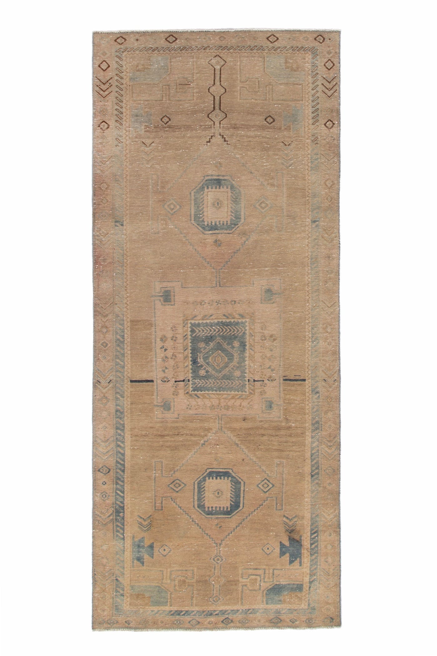 4'1" x 10'6" Vintage Turkish Neutral Runner Rug